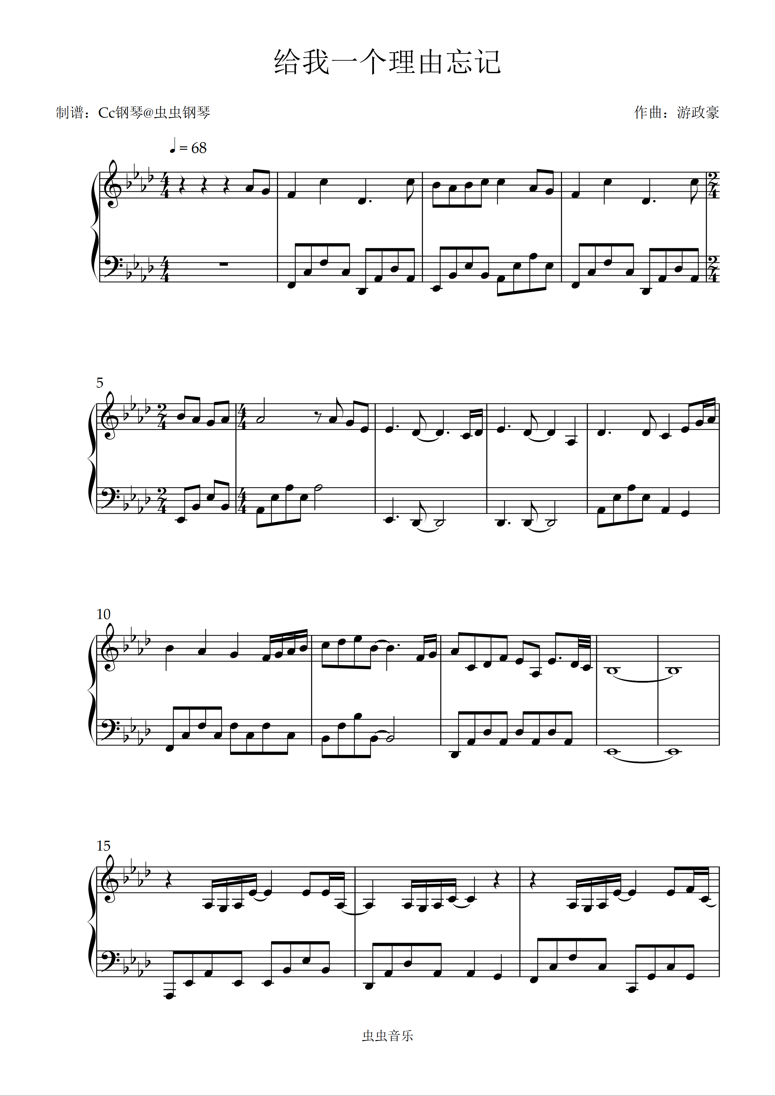 钢琴谱:给我一个理由忘记 原调 好听易上手