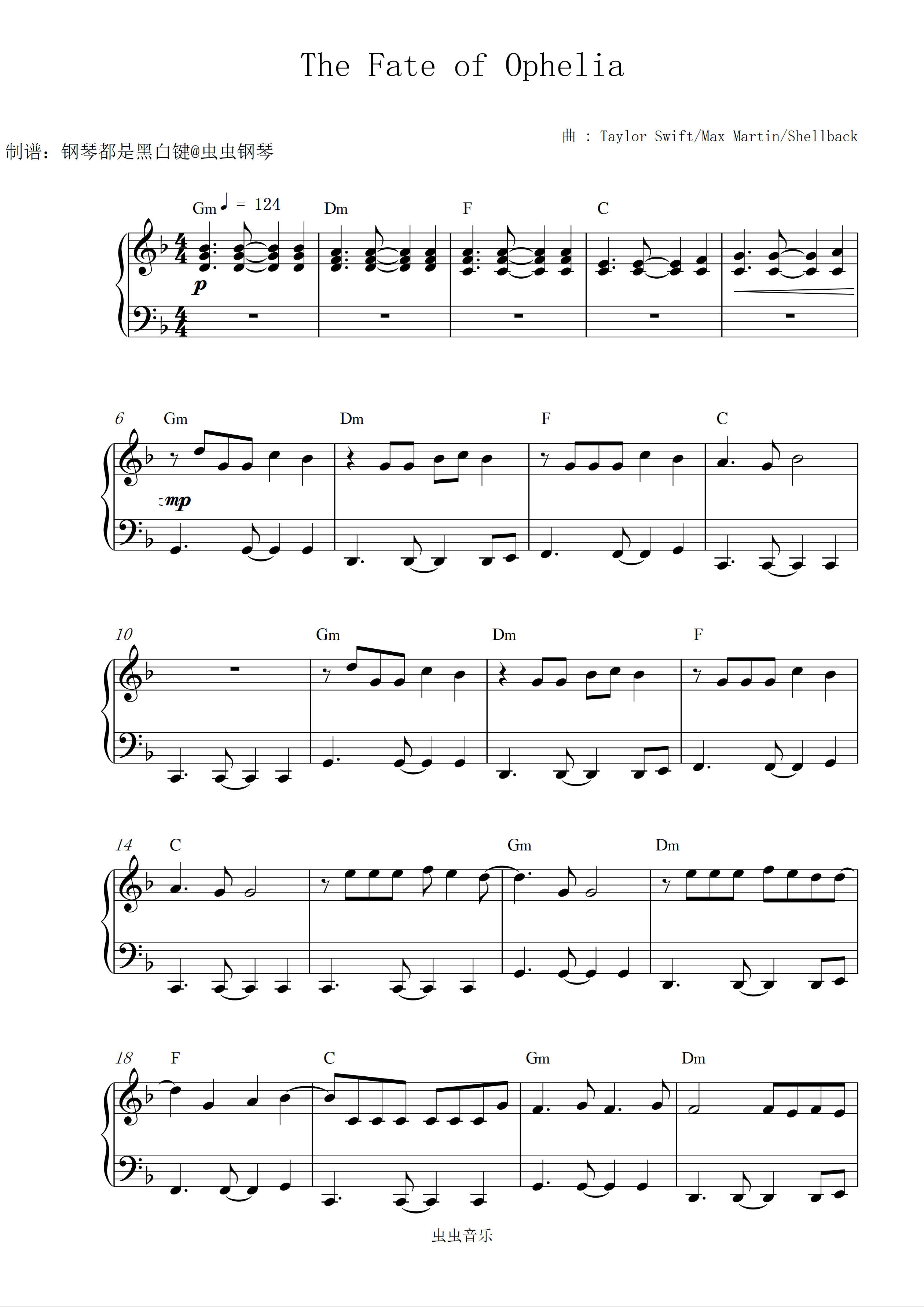 钢琴谱:【霉霉新歌】The Fate of Ophelia-Taylor Swift【附和弦标记】