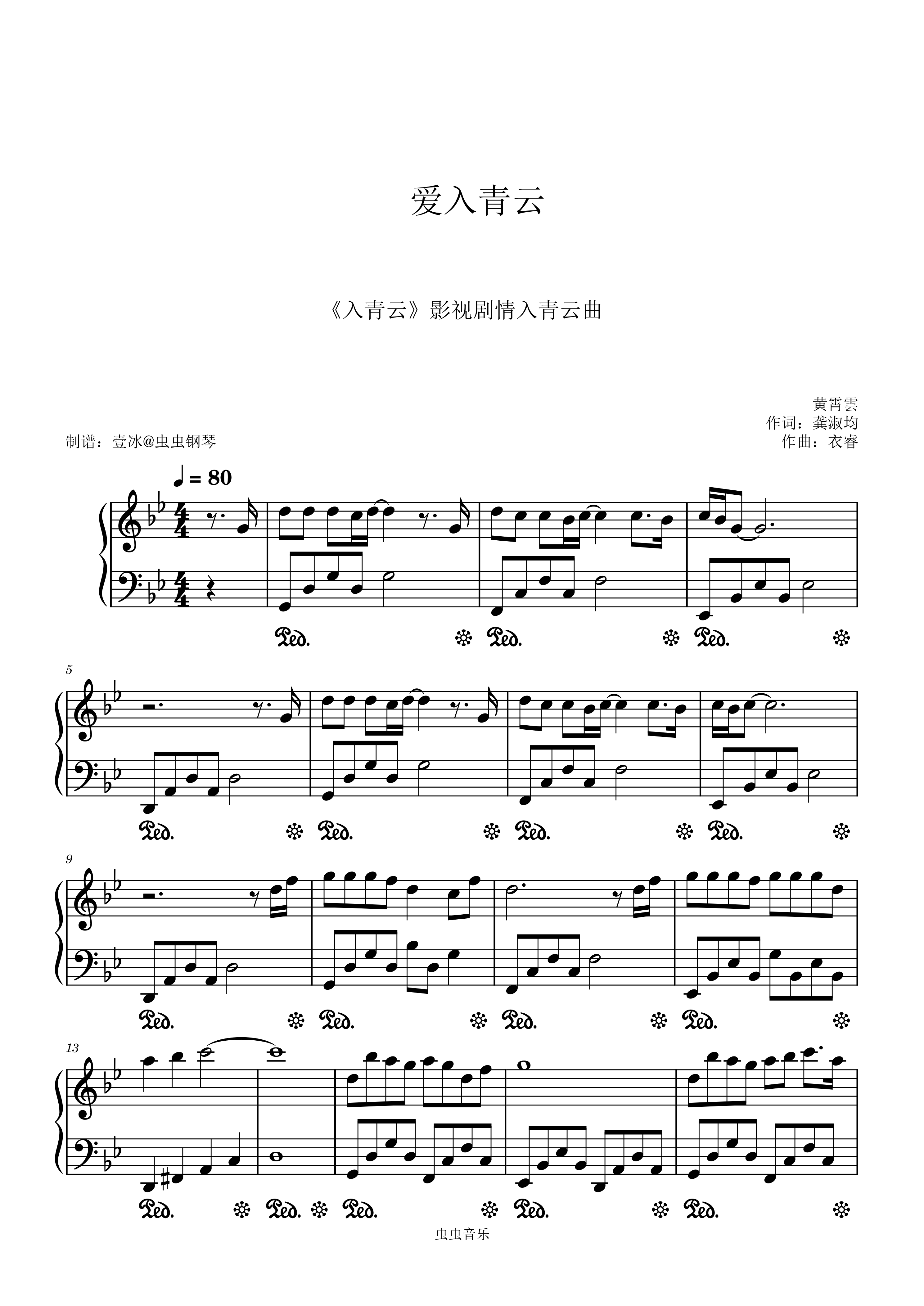 钢琴谱:爱入青云 (《入青云》影视剧情入青云曲) - 原调