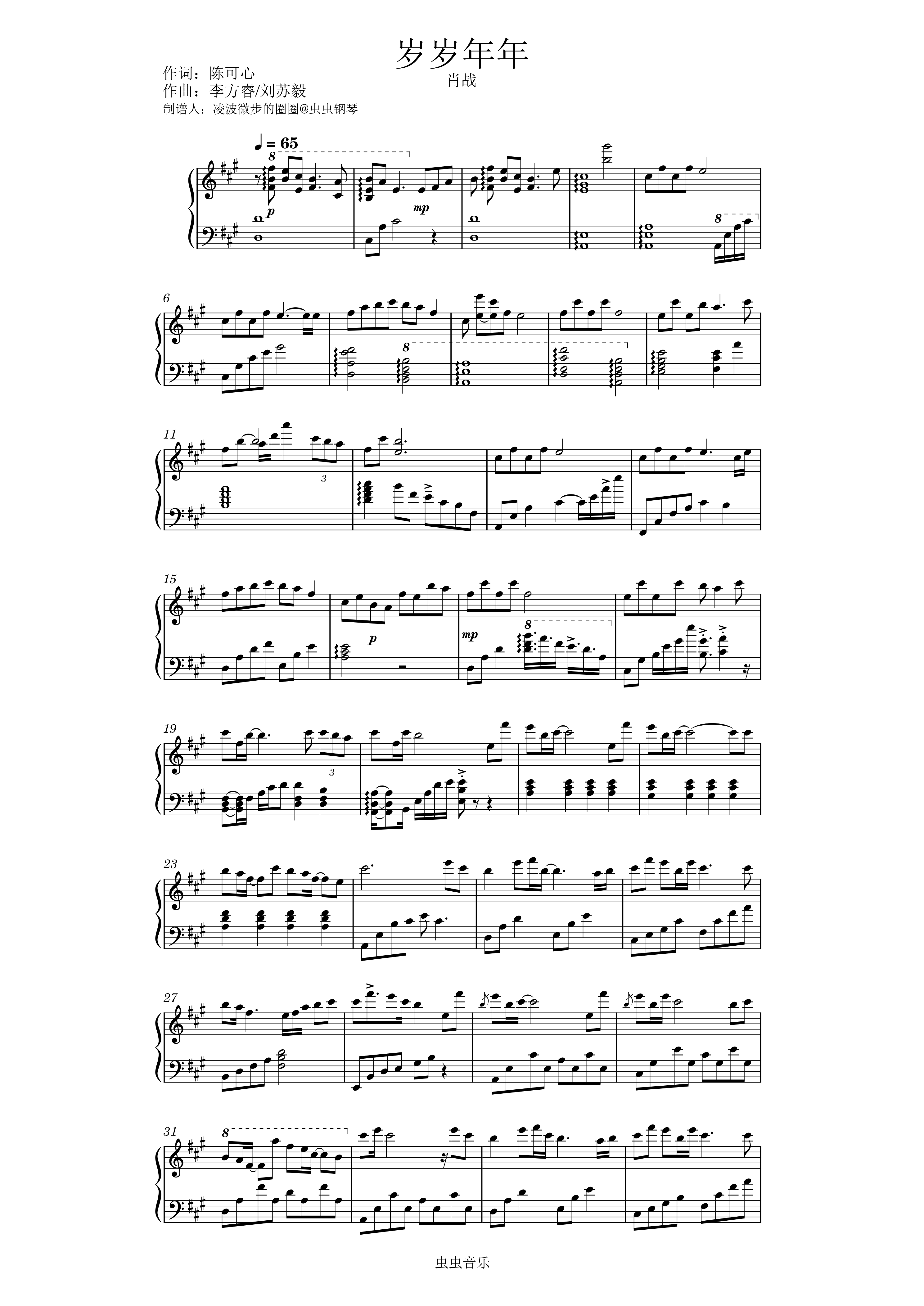 • 岁岁年年钢琴简谱 Eb调 数字双手 张莫寒