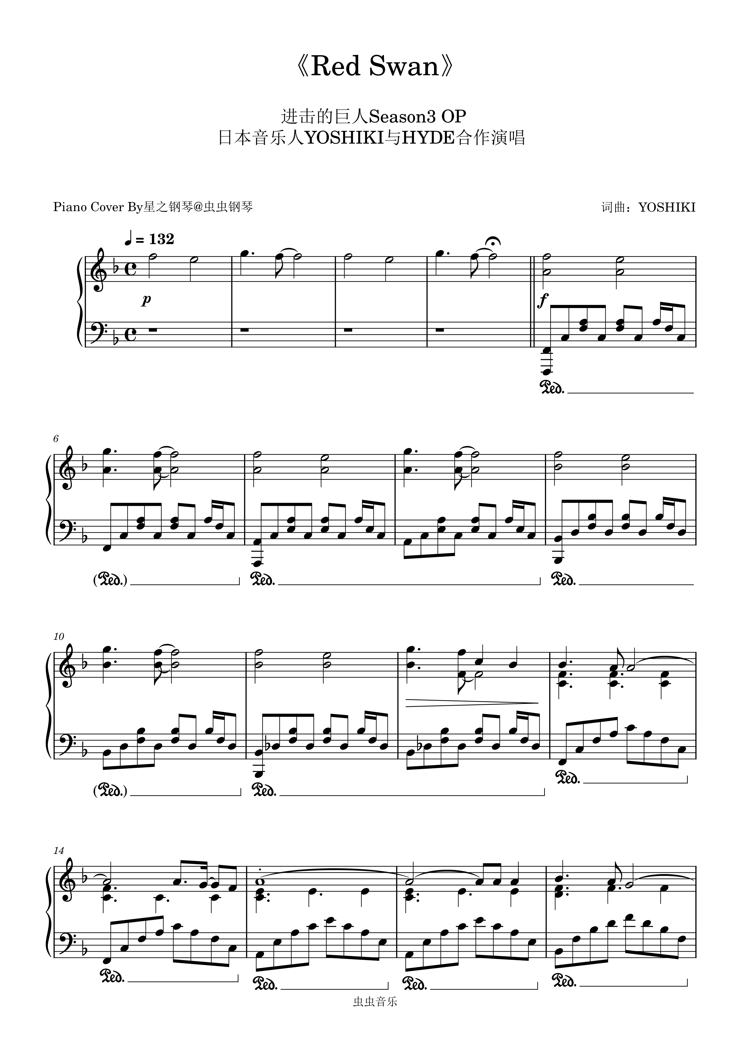 • Red Swan钢琴简谱 F调 数字双手 YOSHIKI