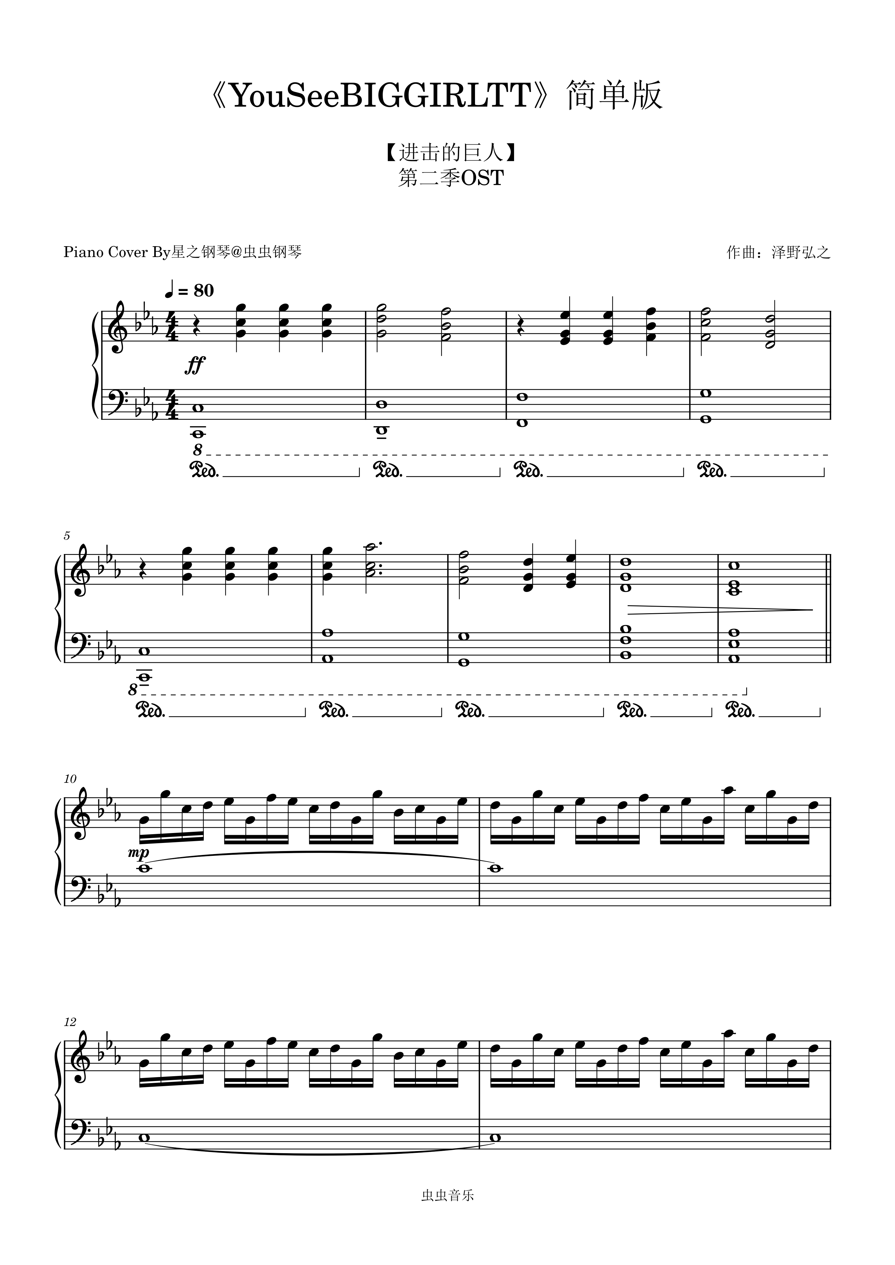 钢琴谱:【进击的巨人】第二季OST《YouSeeBIGGIRLTT》简单钢琴版~星之钢琴~