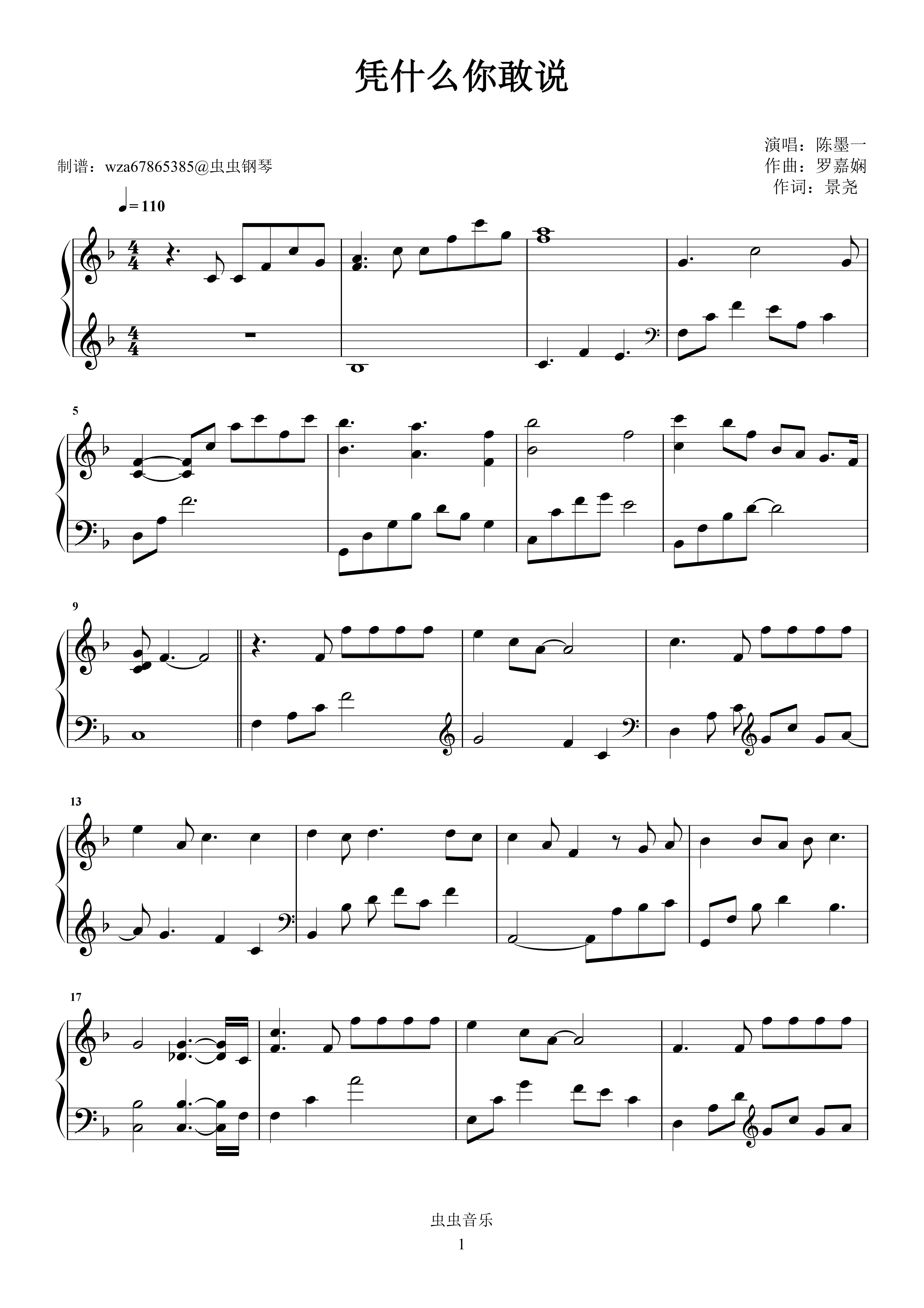 • 曾经你说钢琴简谱 C调 数字双手 李师珏/张博文Bryan Z