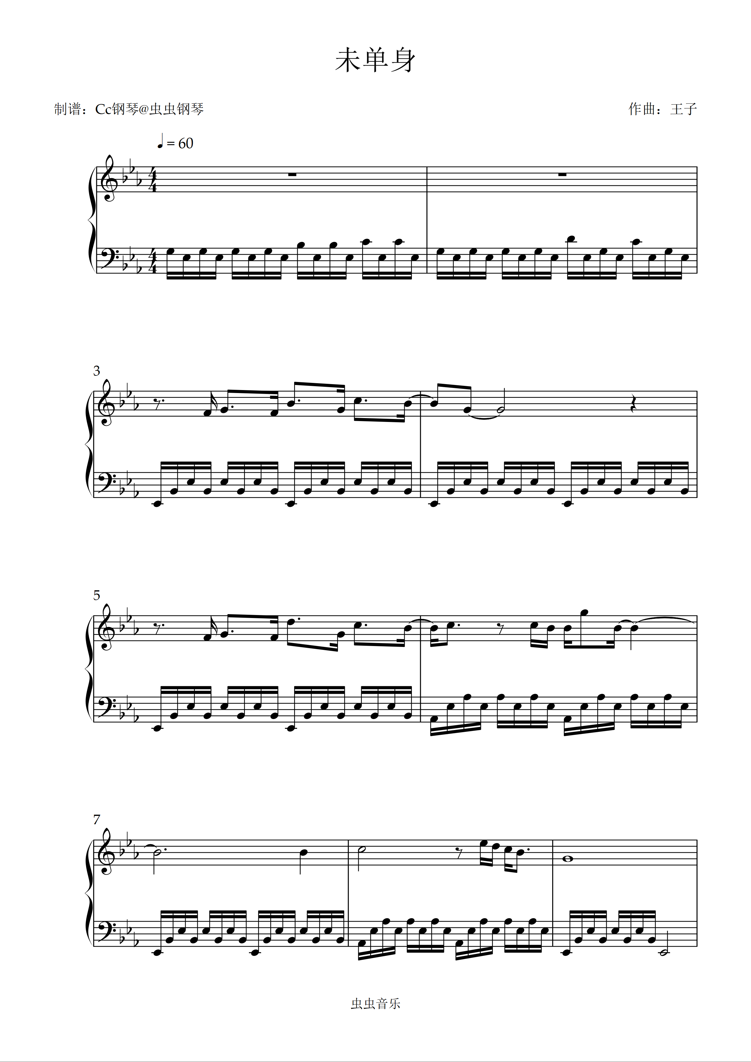 • 单身美好钢琴简谱 F调 数字双手 黄婷
