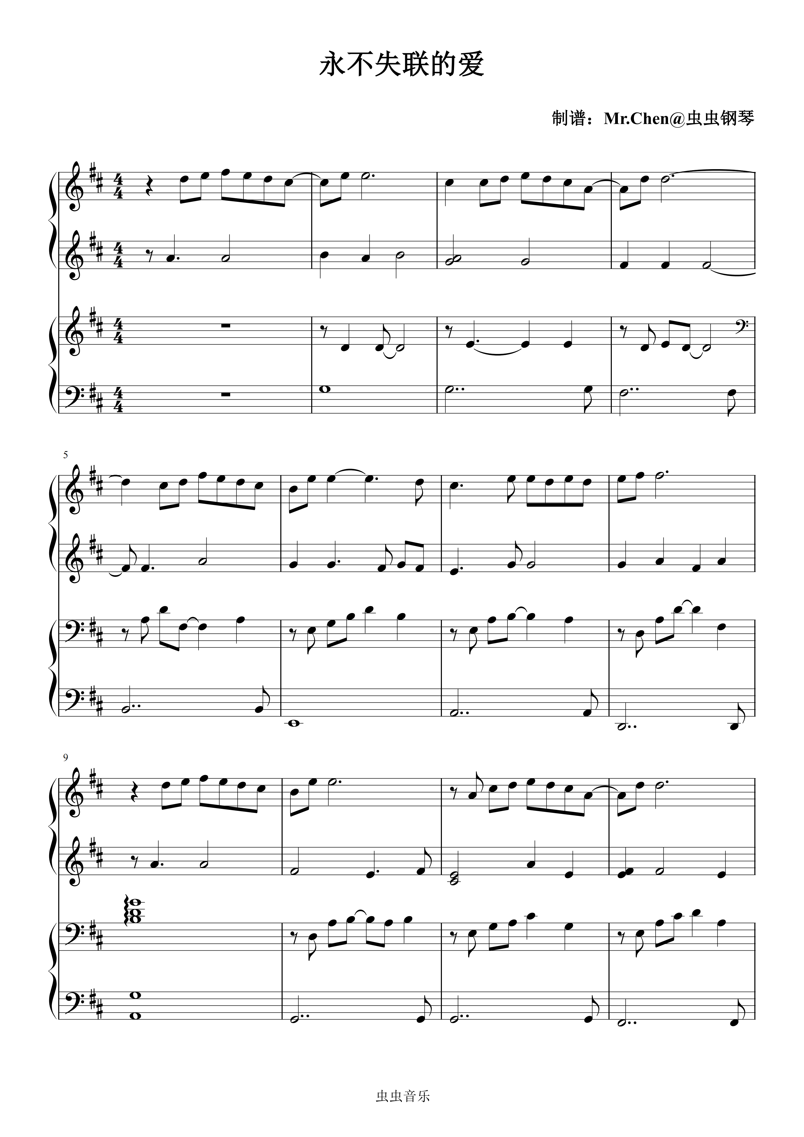 钢琴谱:永不失联的爱 (四手联弹)原调 - 单依纯