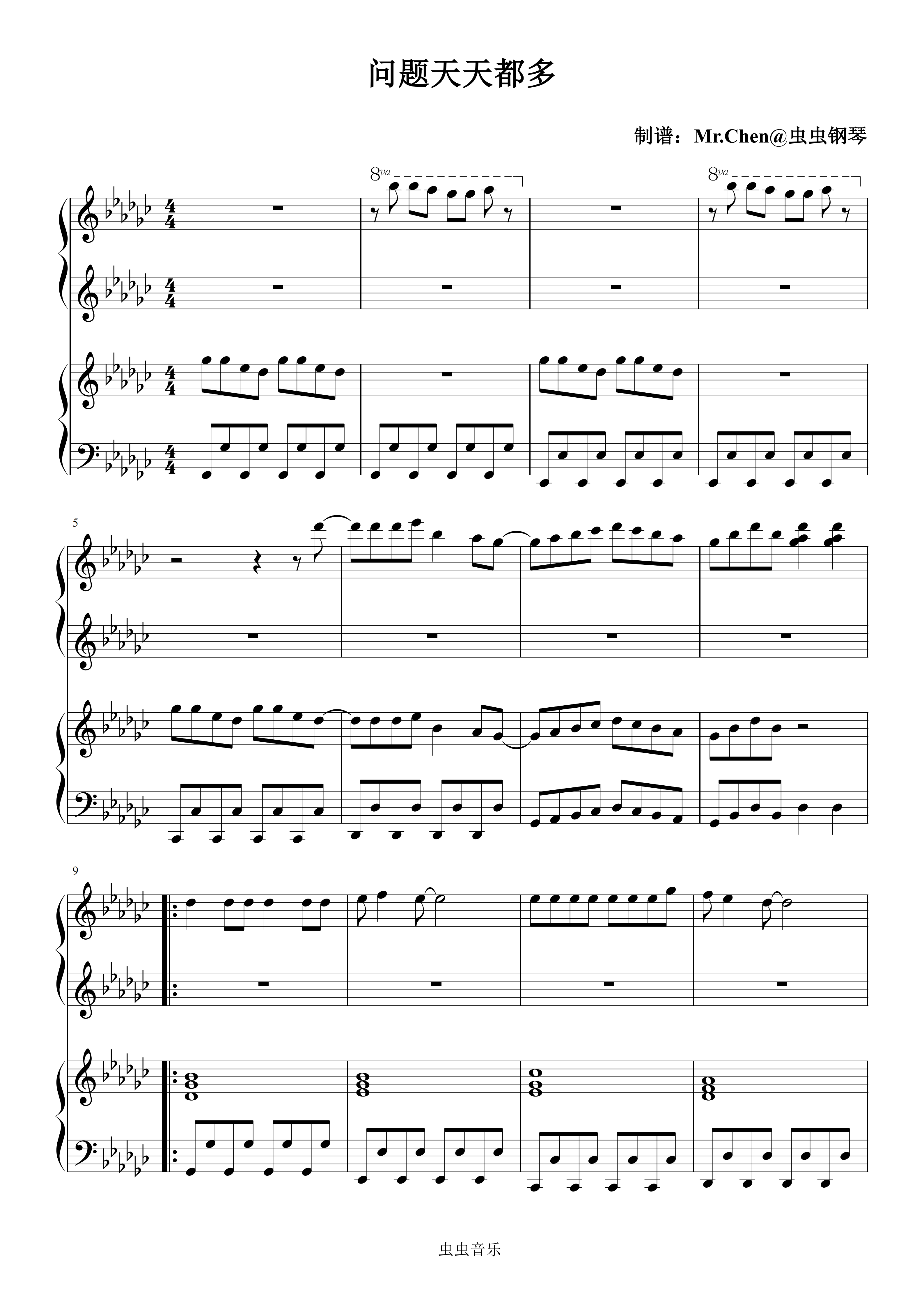 钢琴谱:问题天天都多 (四手联弹)原调 - 欧倩怡