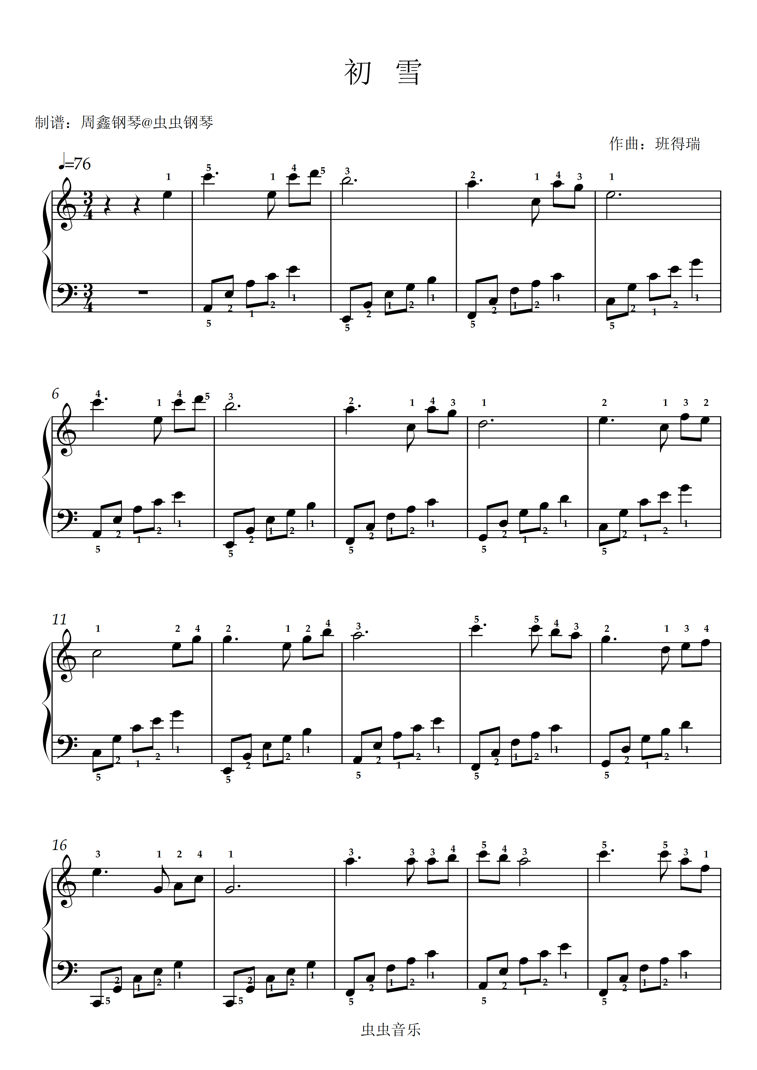 《初雪》C调 带指法 简单版