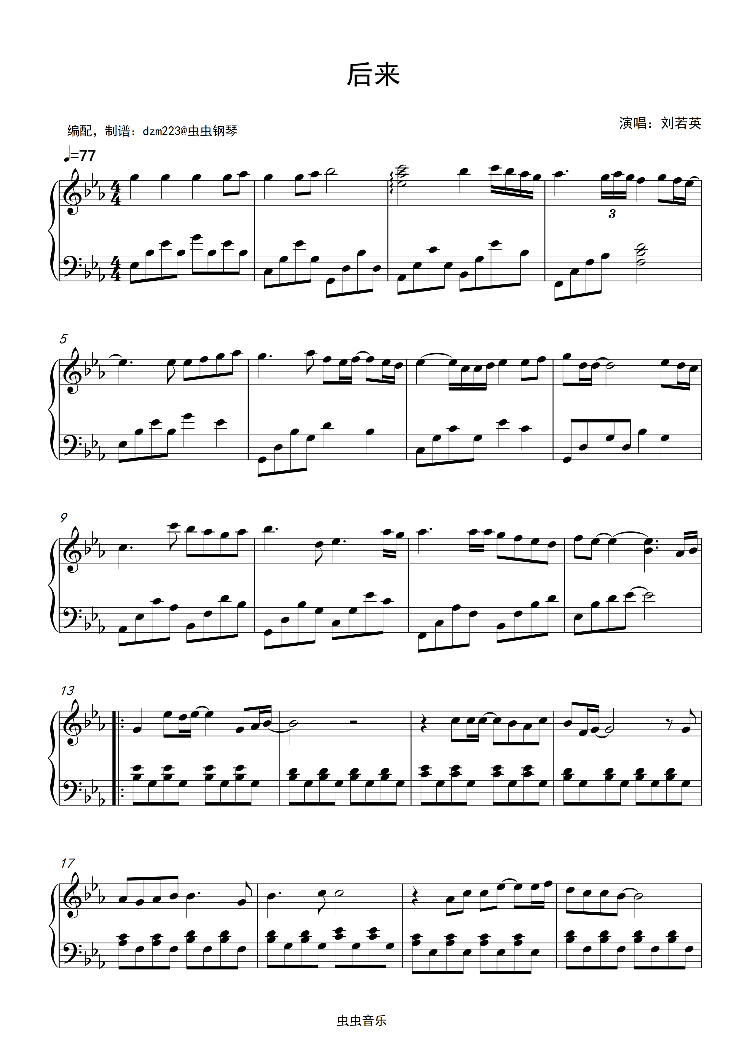 • 后来钢琴简谱 Eb调 数字双手 施人诚