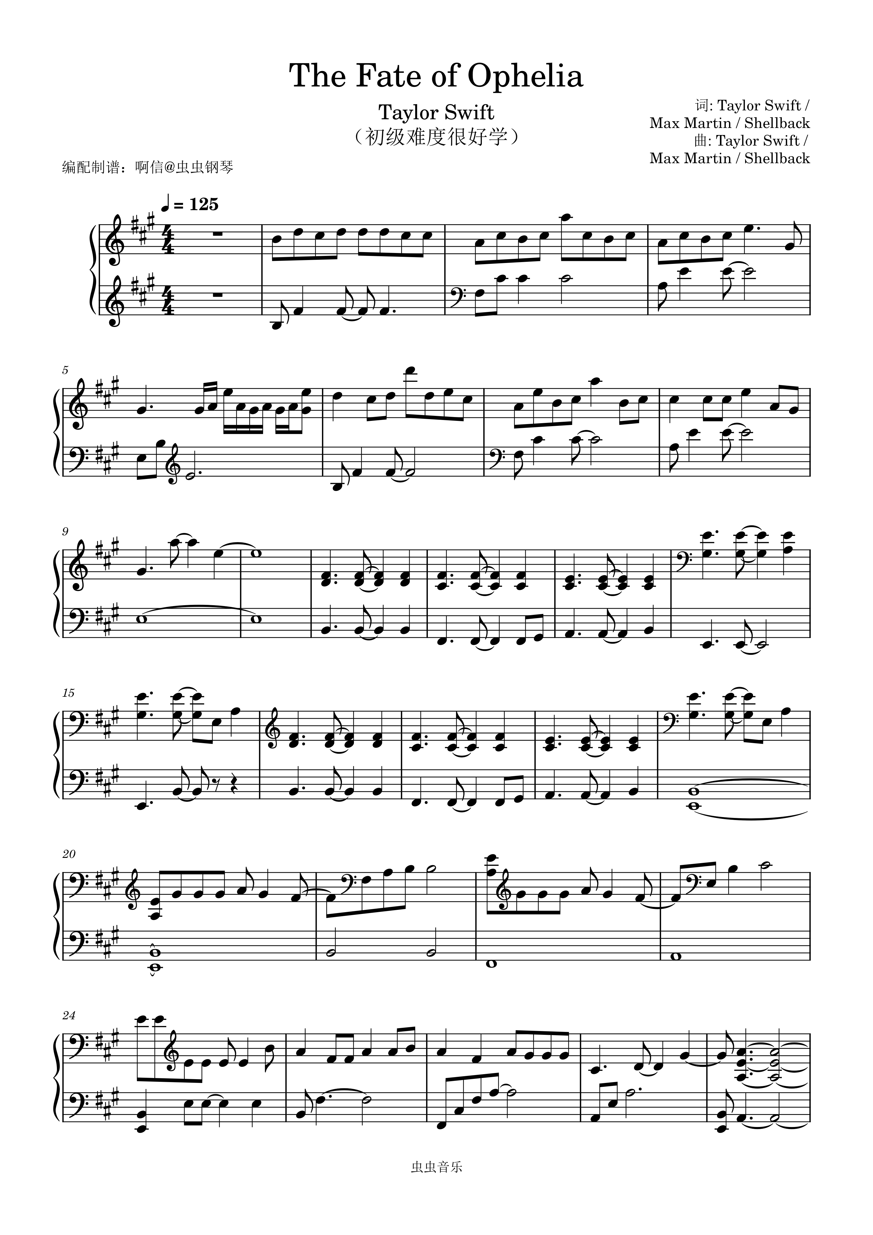 The Fate of Ophelia钢琴简谱 数字双手 Taylor Swift / Max Martin / Shellback