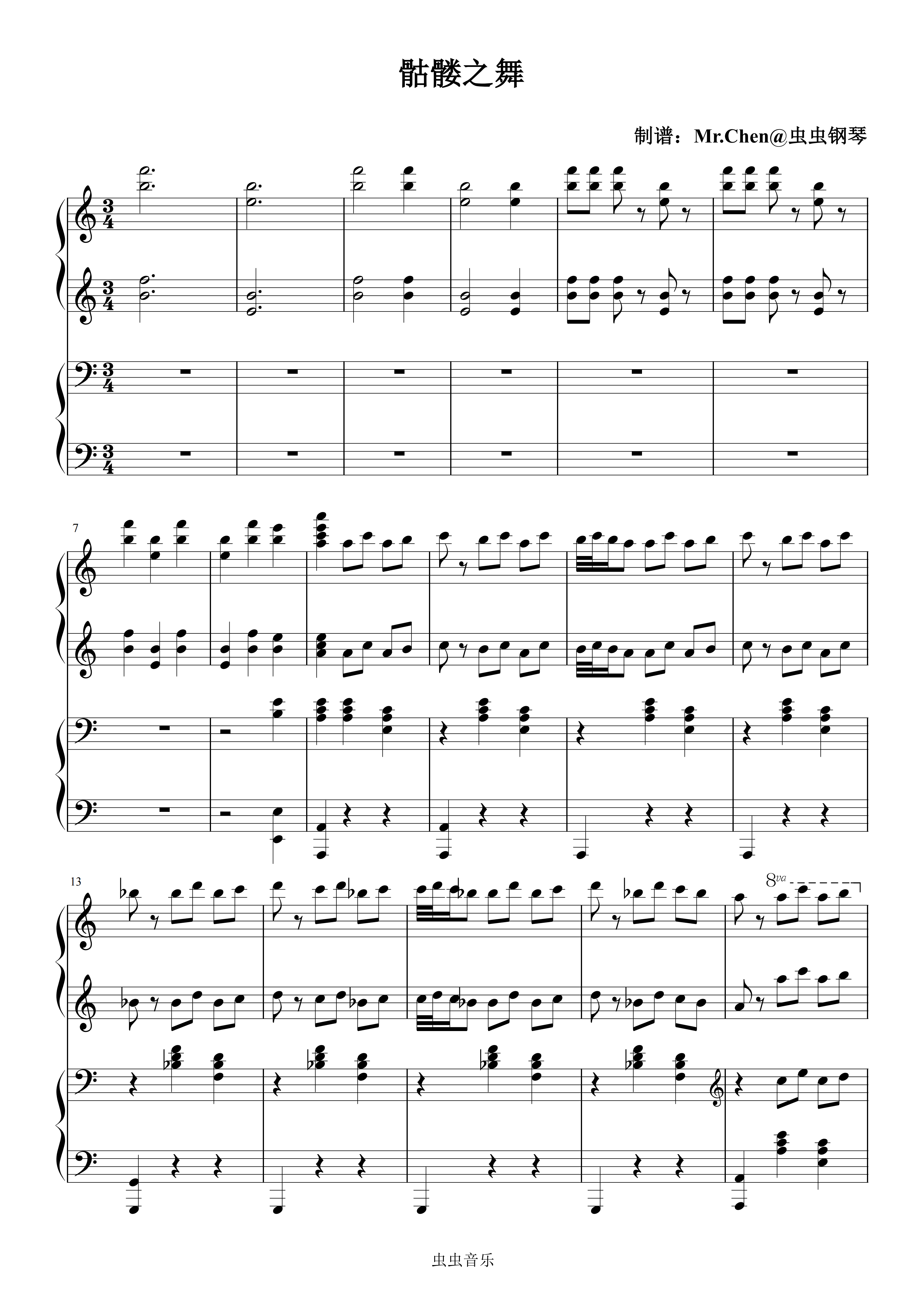钢琴谱:骷髅之舞 (四手联弹)C调 - 万圣节必弹