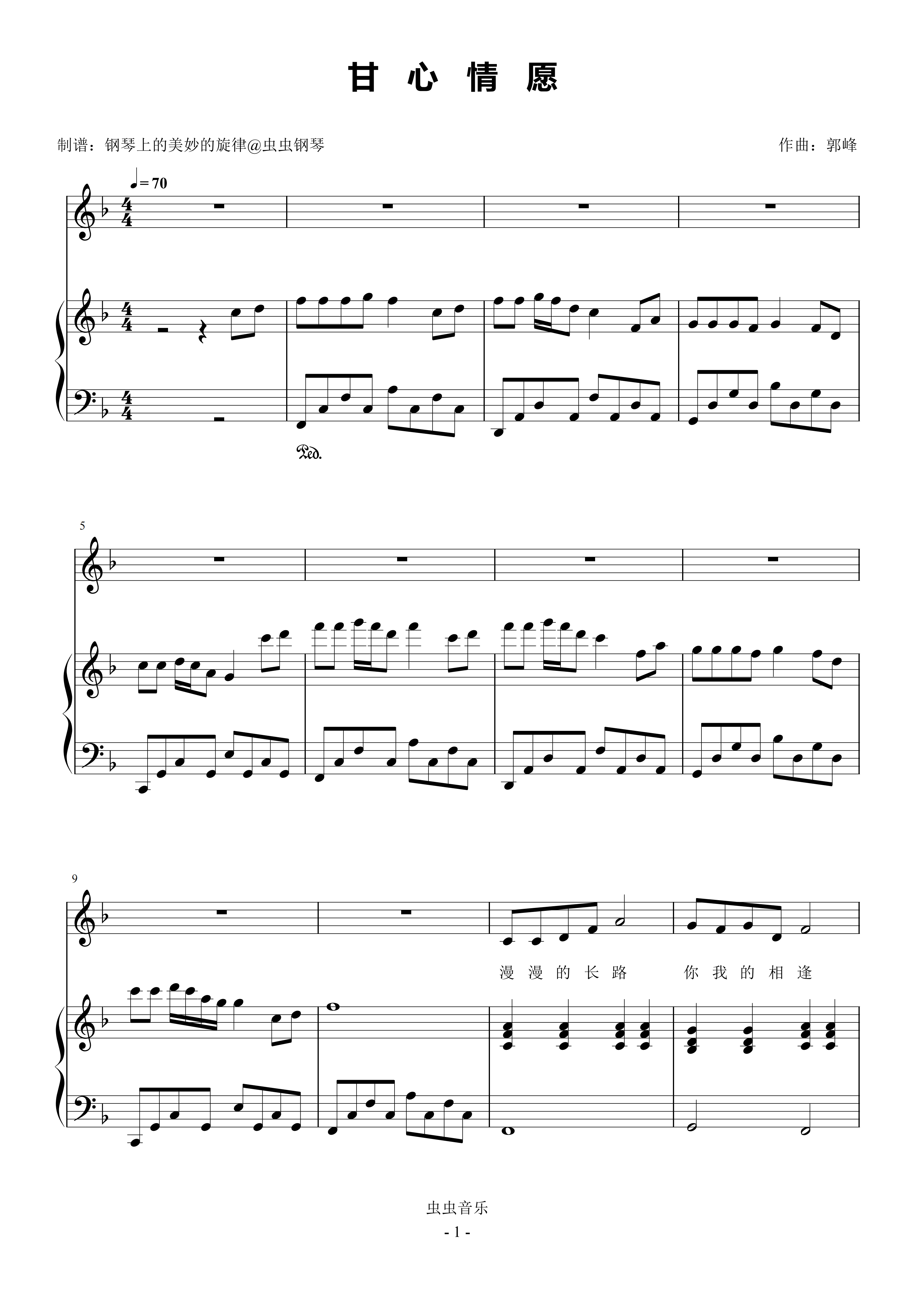 • 甘心情愿钢琴简谱 F调 数字双手 郭峰