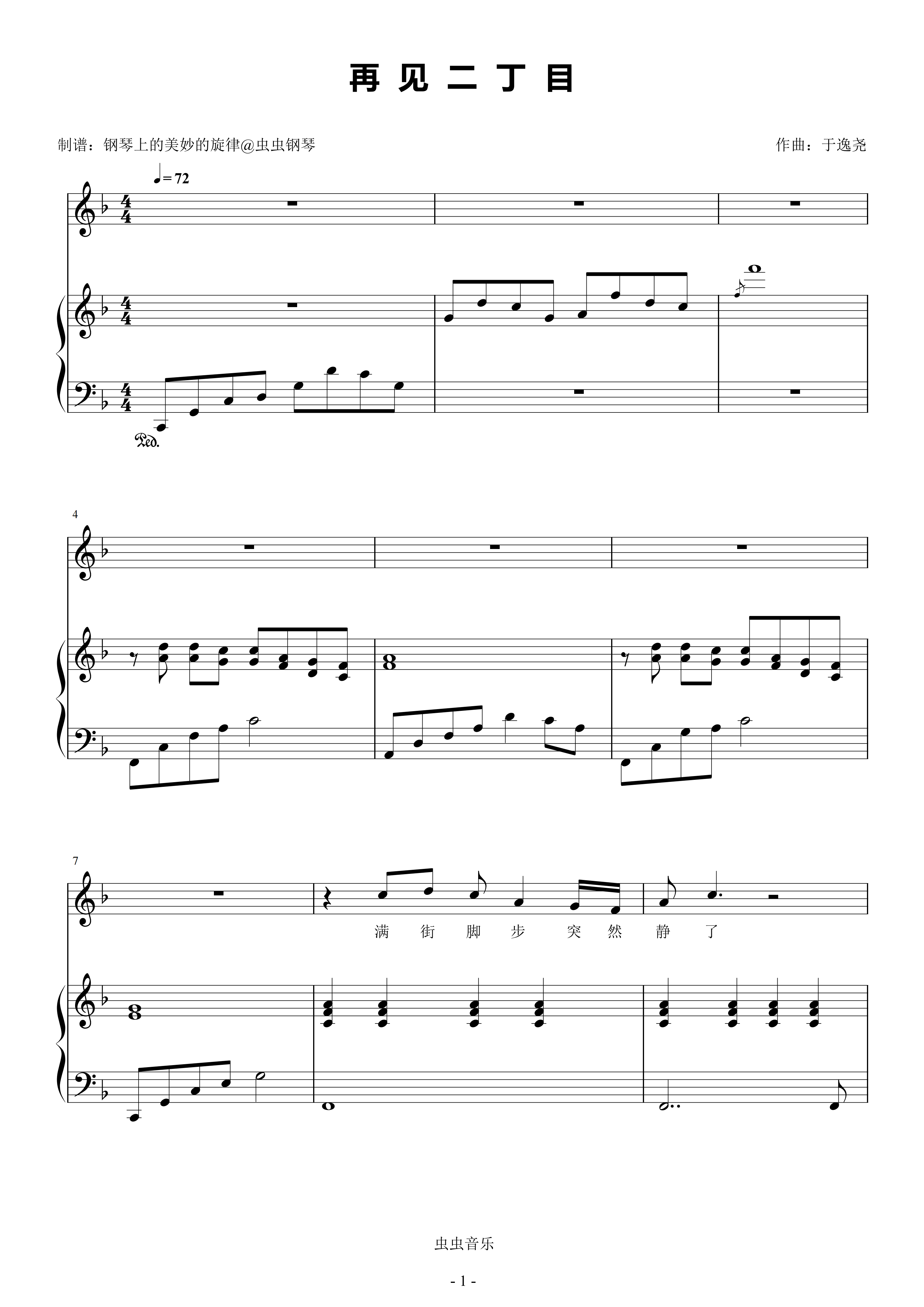 钢琴谱:再见二丁目 简易钢琴弹唱伴奏 带歌词 杨千嬅