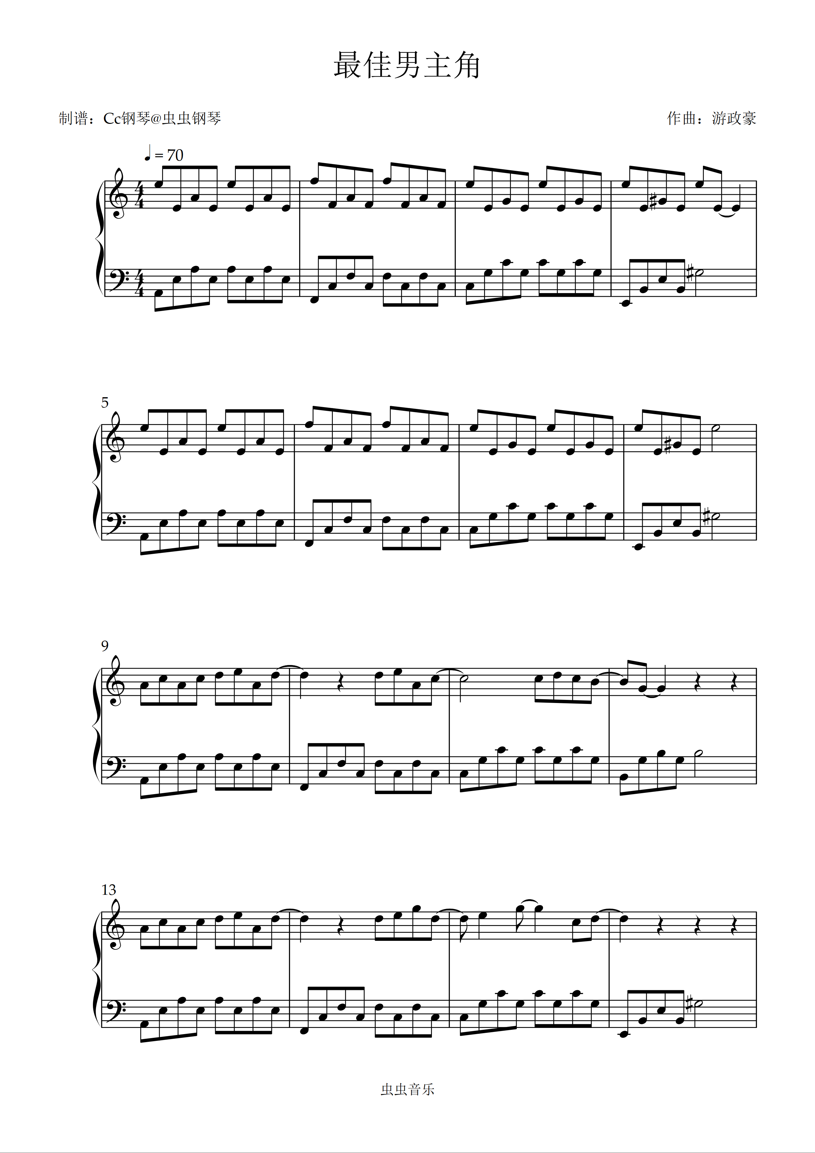 最佳男主角钢琴简谱 数字双手 李焯雄