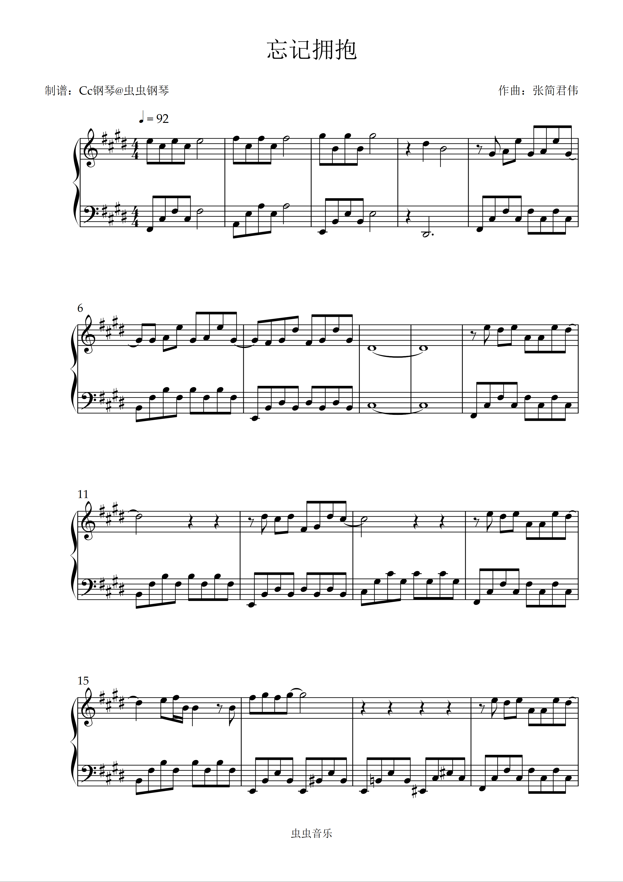 • 忘记拥抱钢琴简谱 c#调 数字双手