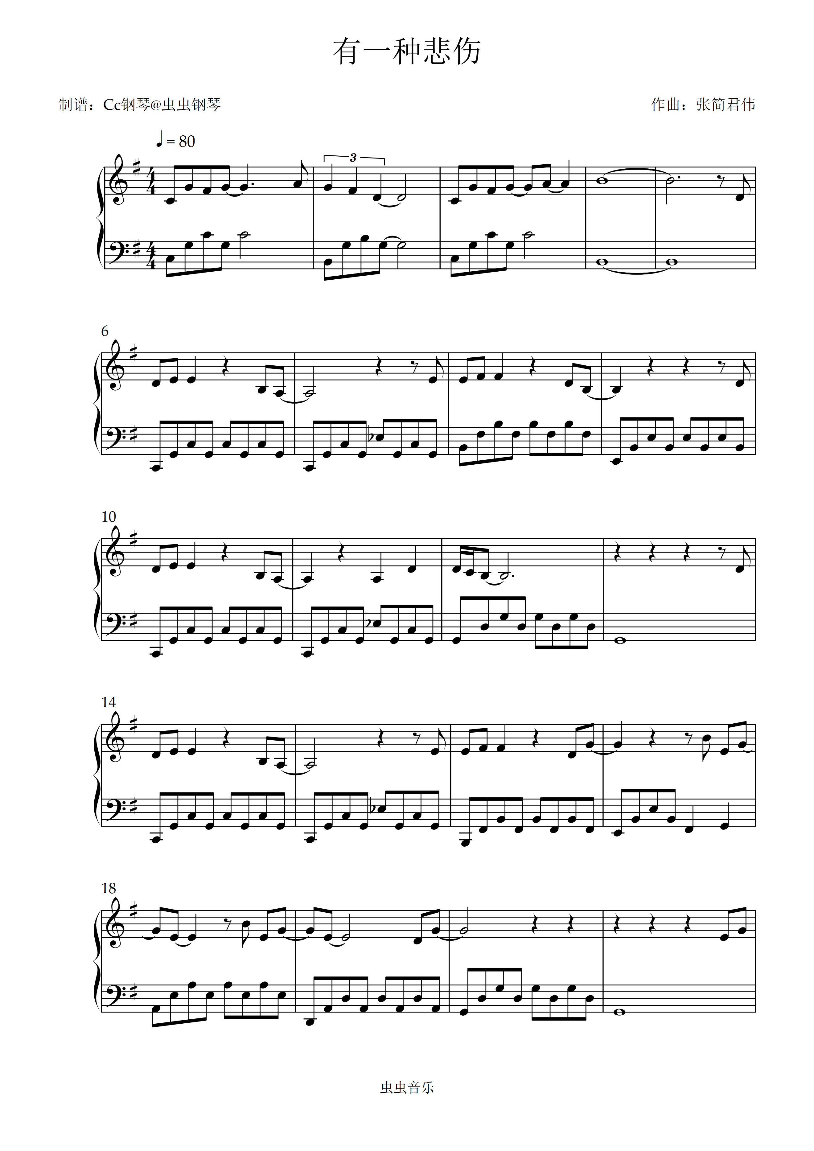 钢琴谱:有一种悲伤 原调 好听易上手