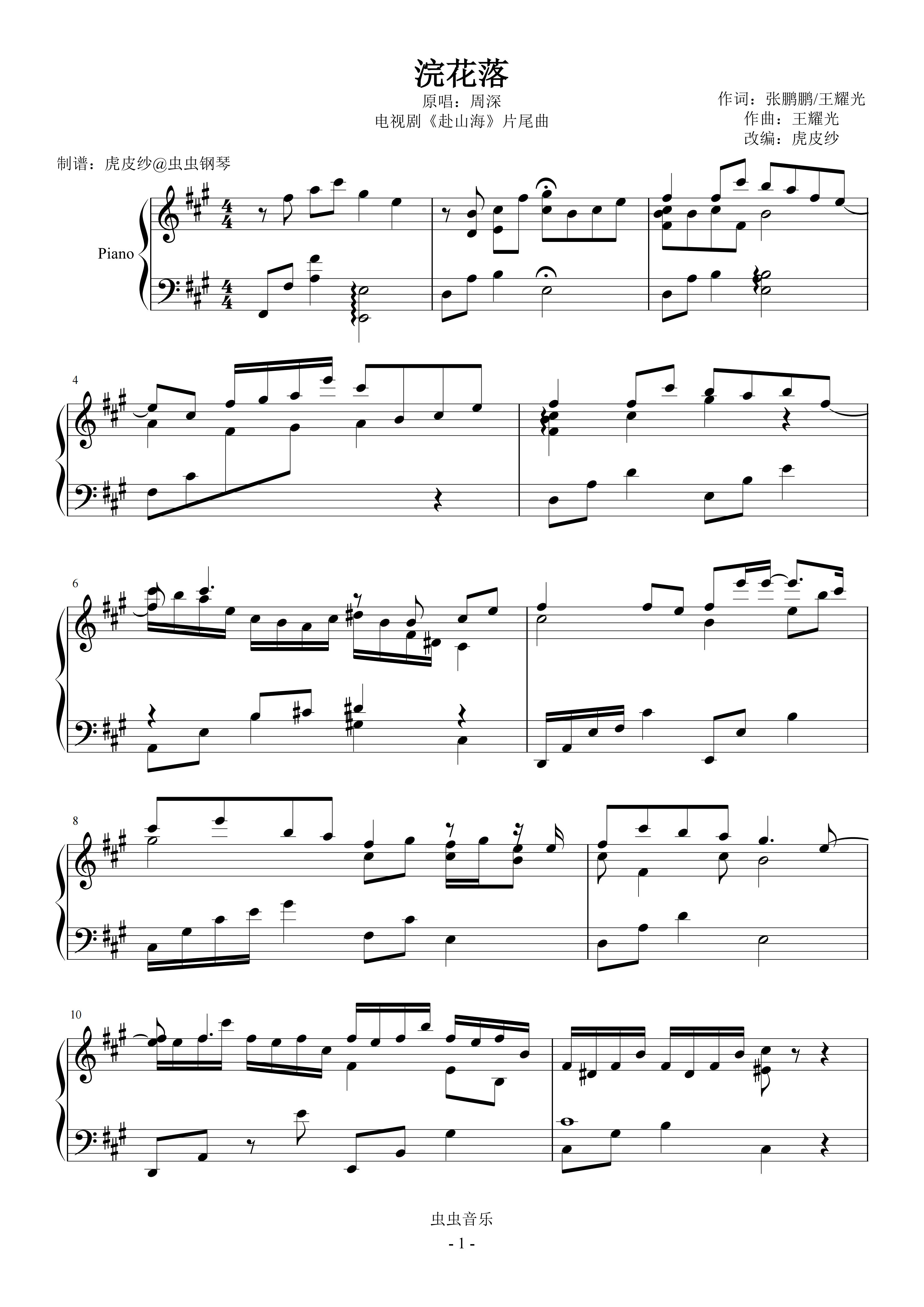 钢琴谱:赴山海片尾曲 浣花落 周深