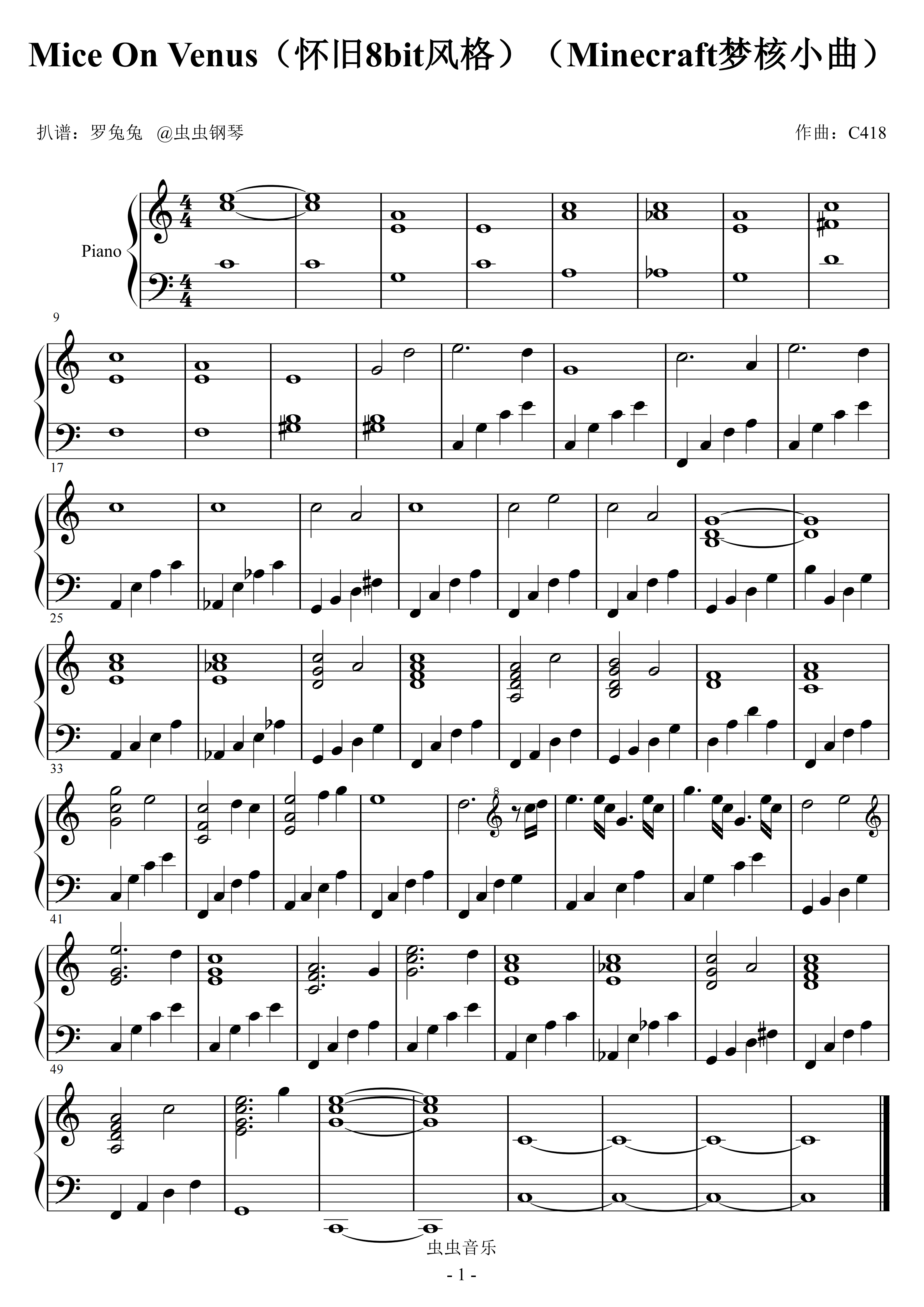 钢琴谱:Mice On Venus(怀旧8bit风格)(Minecraft梦核小曲)