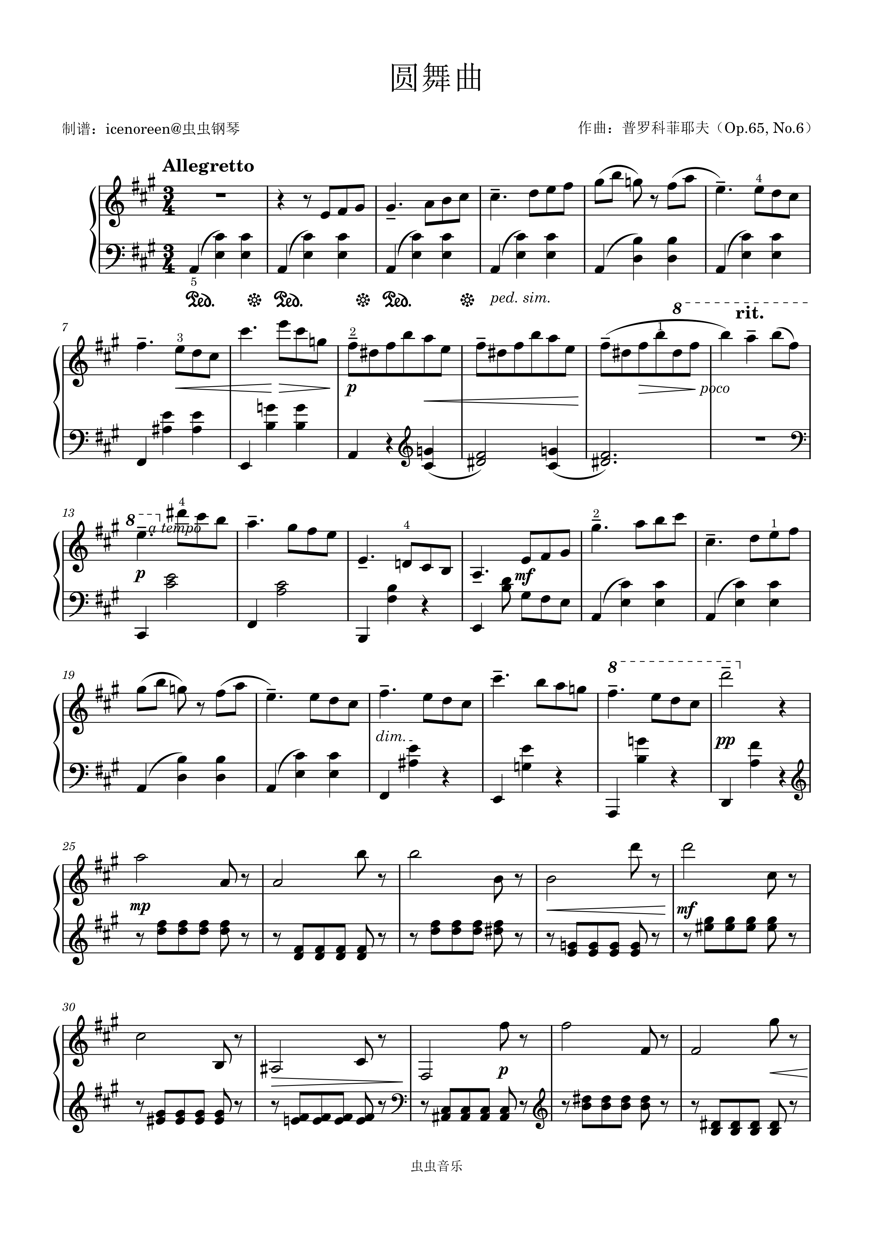 圆舞曲(Op.65, No.6)钢琴简谱 数字双手