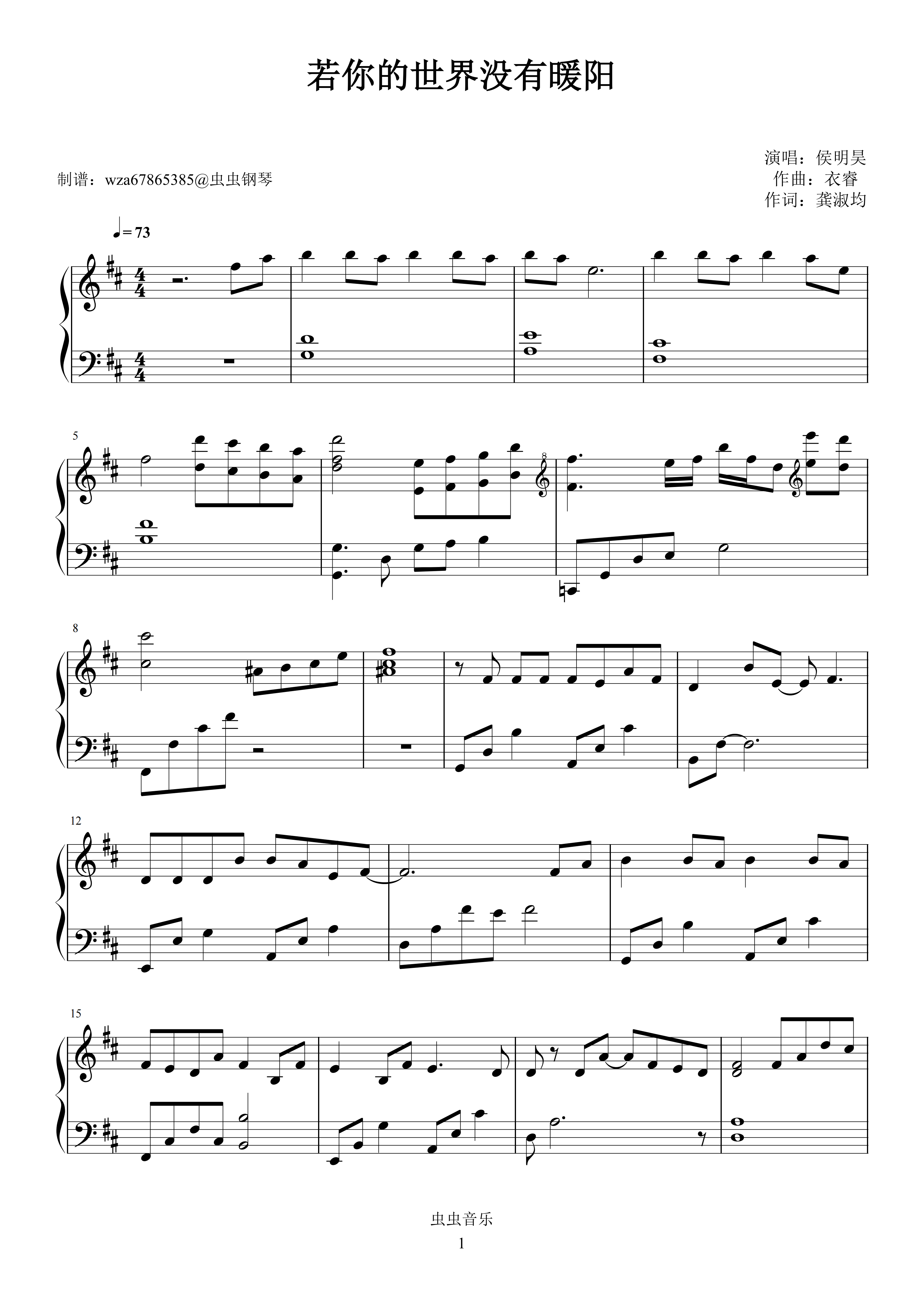 • 向阳花钢琴简谱 D调 数字双手 边疆
