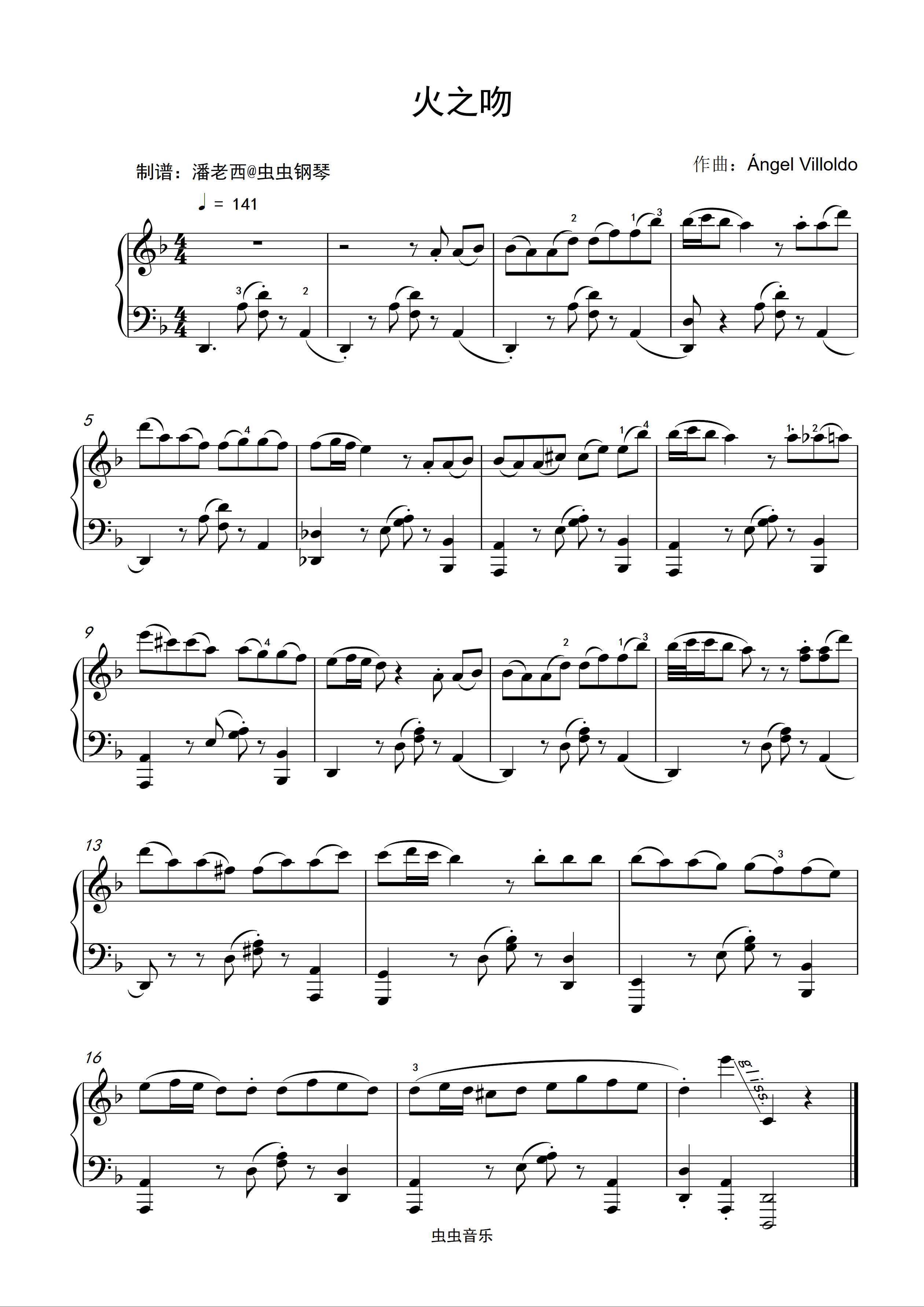 • 以无旁骛之吻钢琴简谱 D调 数字双手 段思思