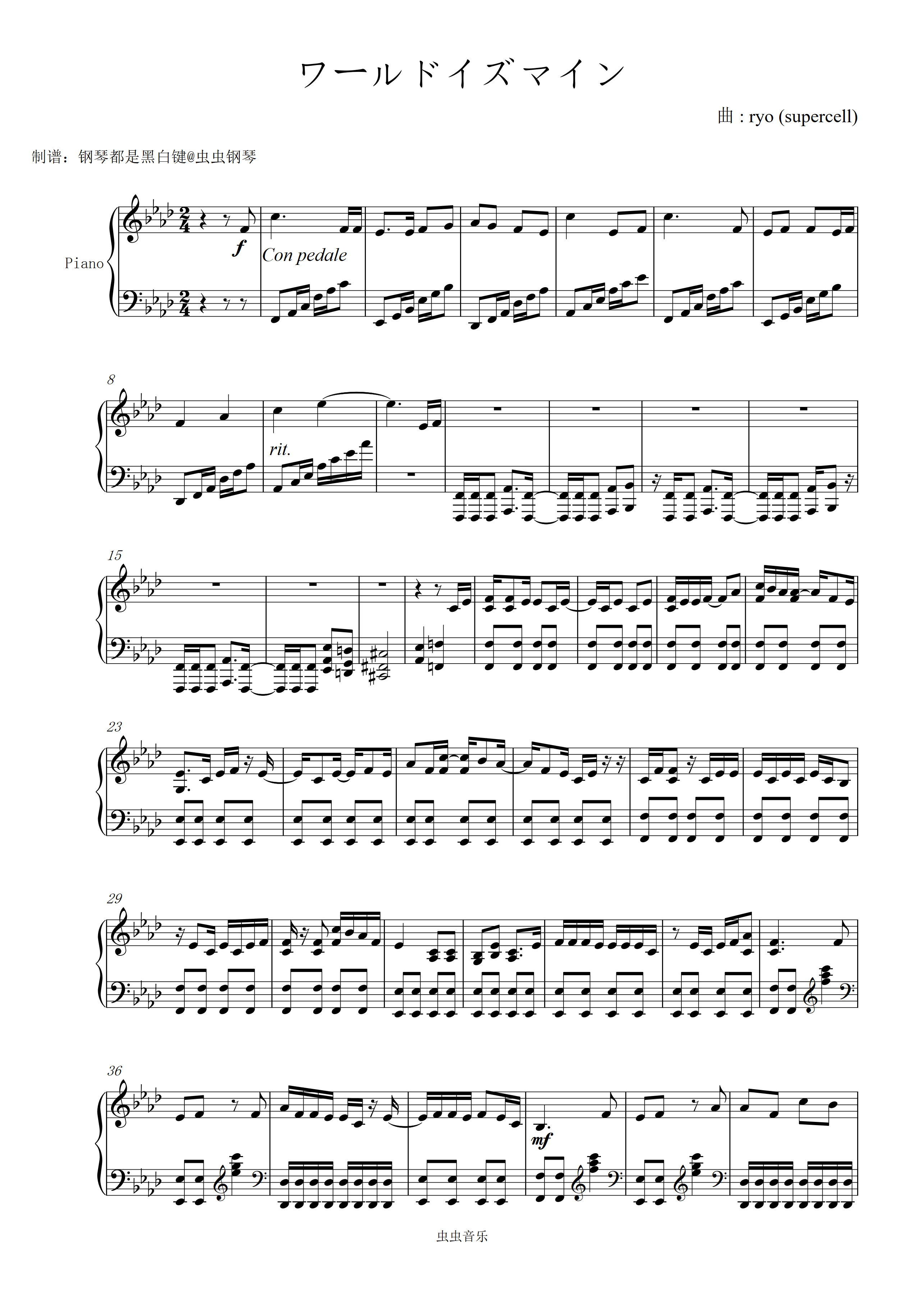 ワールドイズマイン钢琴简谱 数字双手 ryo (supercell)