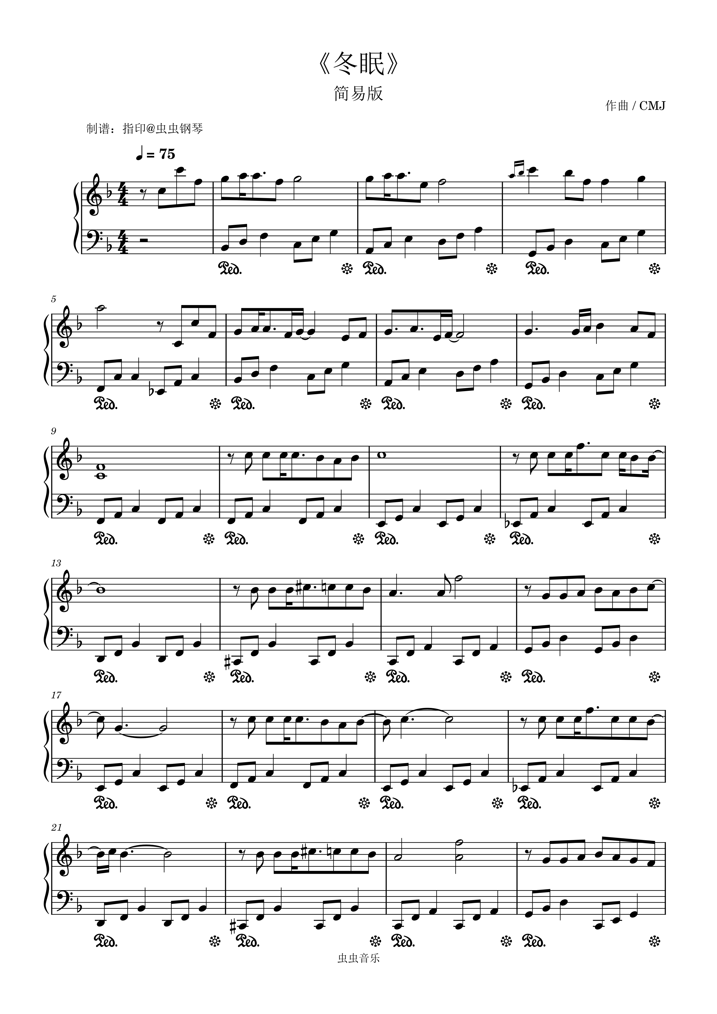 • 冬眠钢琴简谱 F调 数字双手