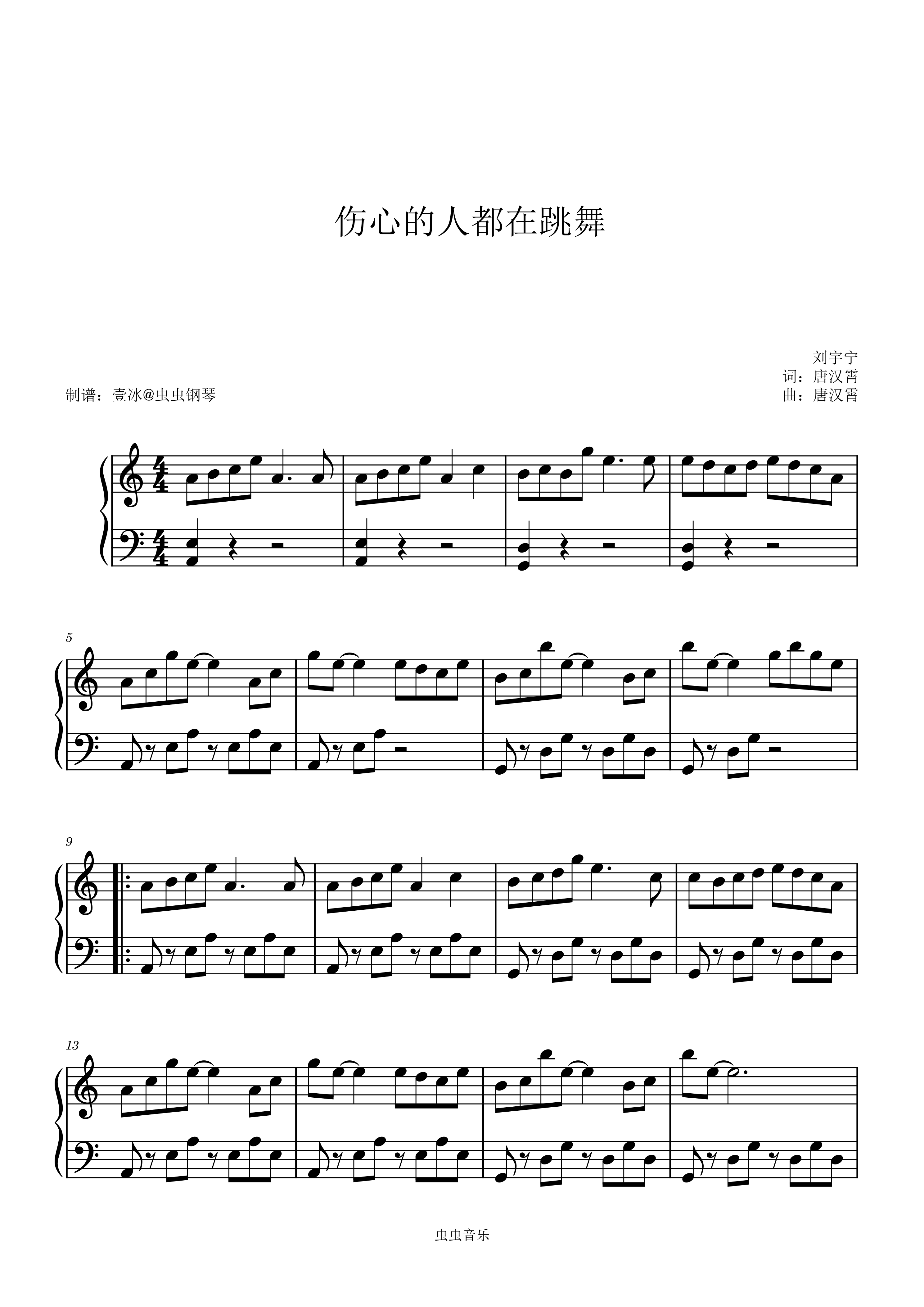 钢琴谱:伤心的人都在跳舞 - 刘宇宁 C调