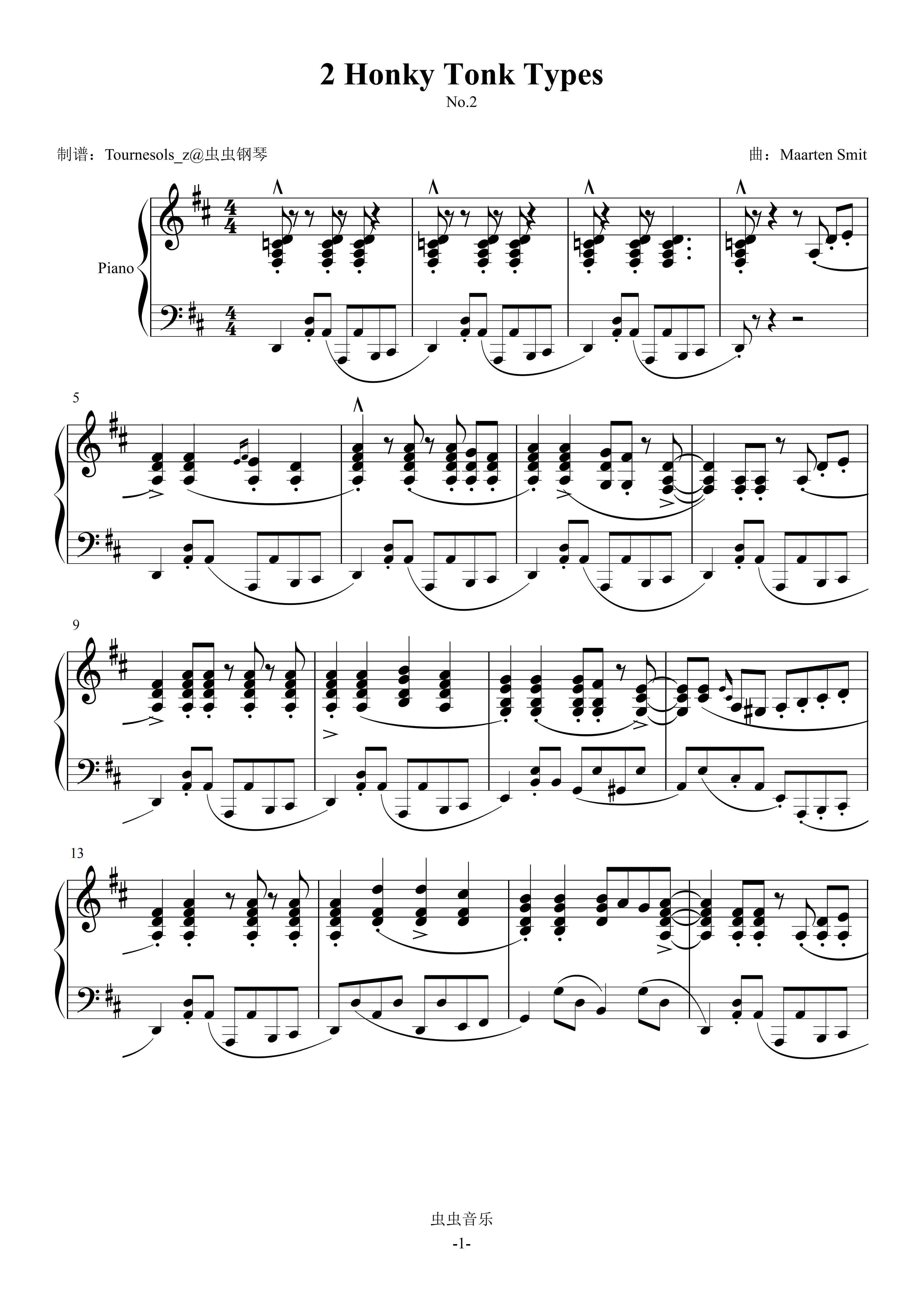 2 Honky Tonk Types No. 2钢琴简谱 数字双手
