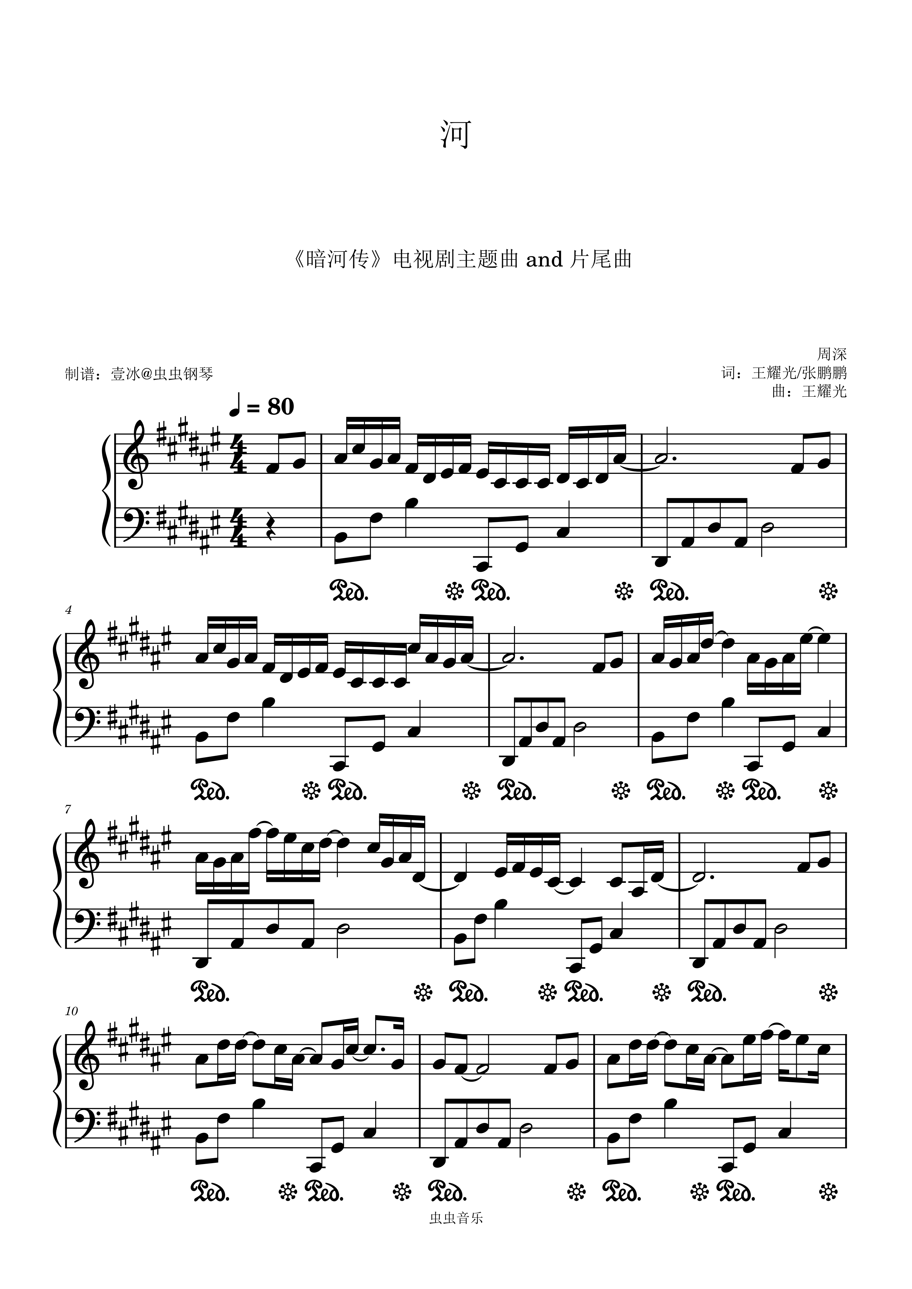钢琴谱:河 (《暗河传》电视剧主题曲 and 片尾曲) - 原调