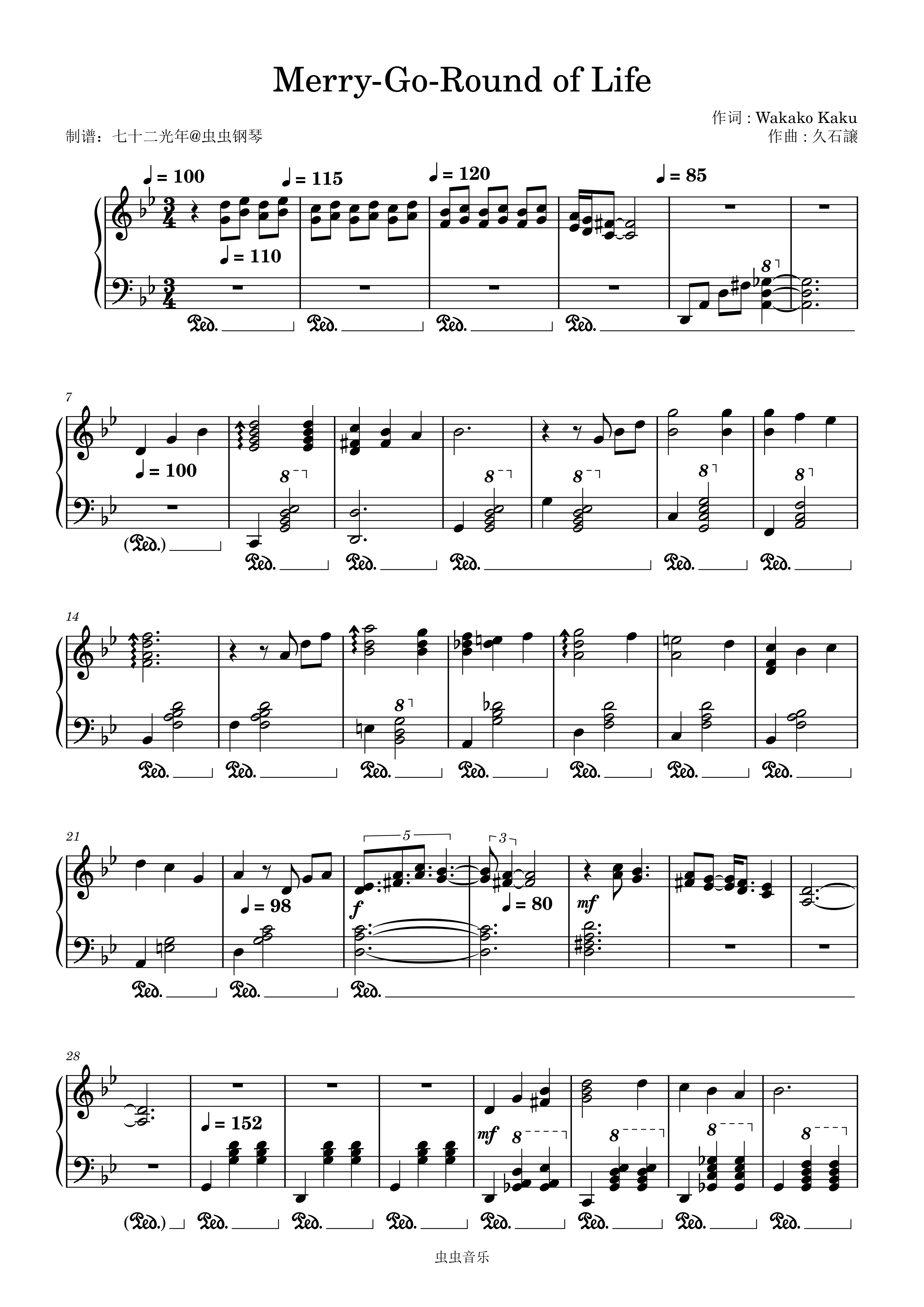 • Merry Go Round of Life钢琴简谱 g调 数字双手