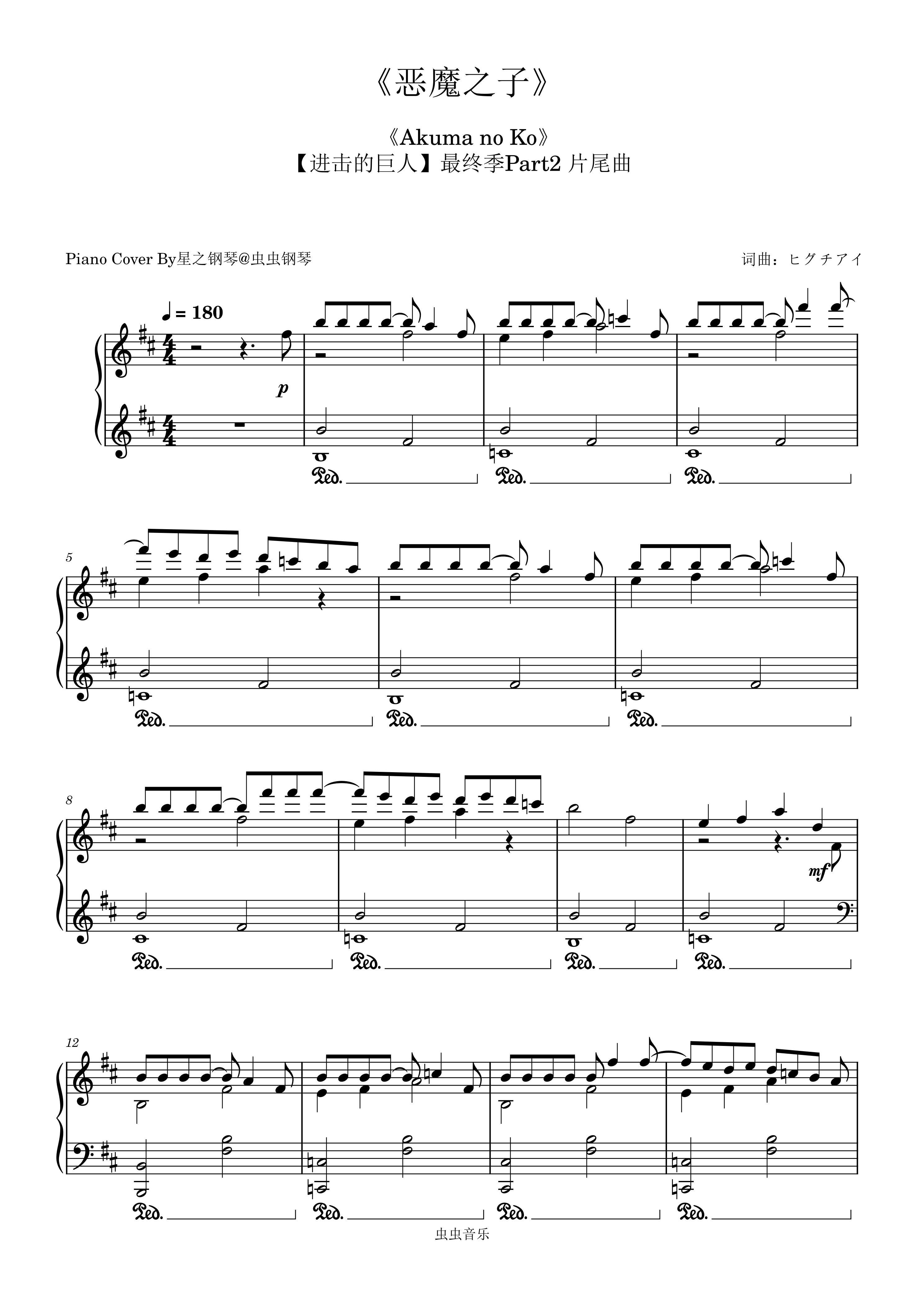 钢琴谱:【进击的巨人】最终季ED《恶魔之子》钢琴独奏版~星之钢琴~