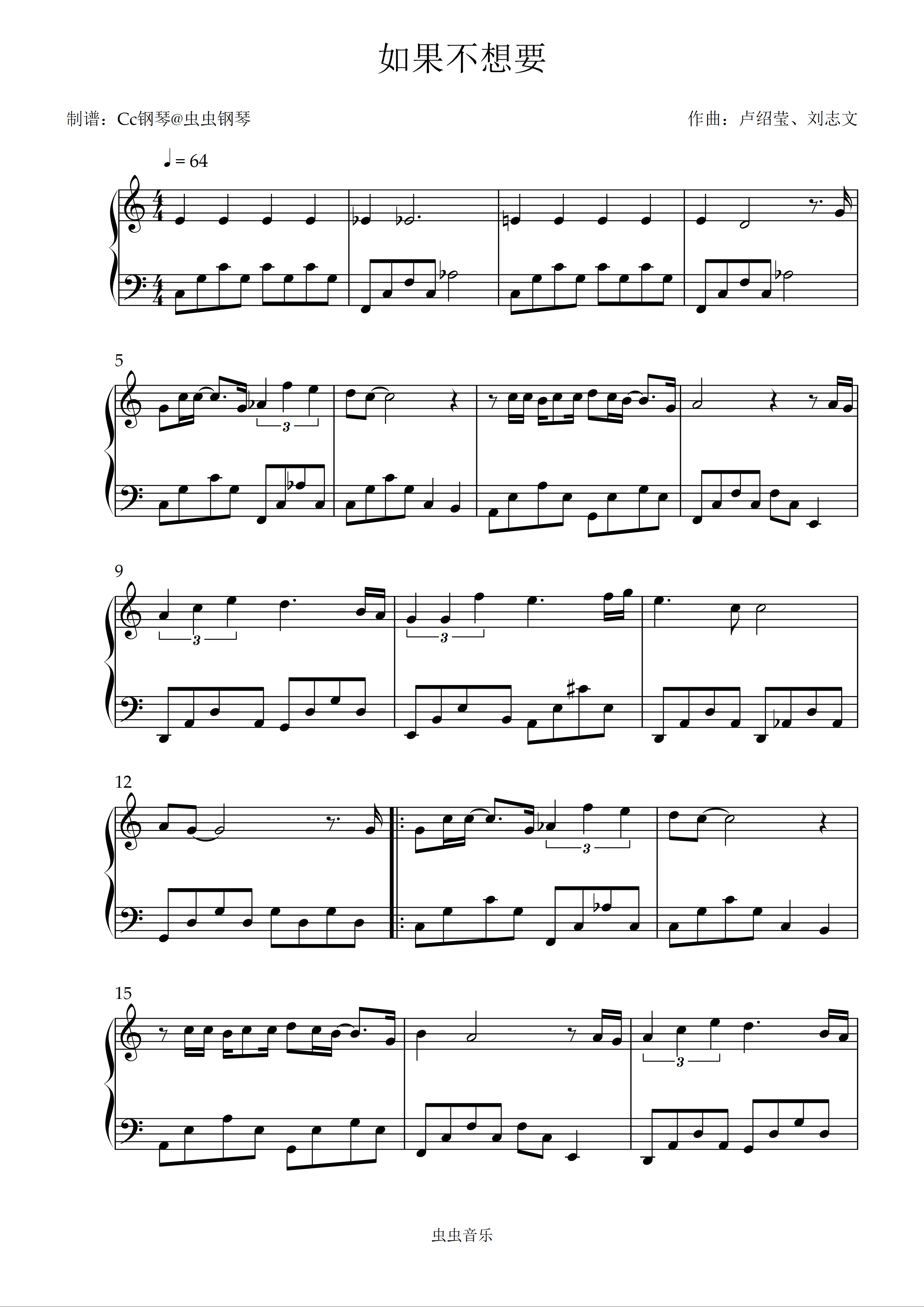 • 我想要钢琴简谱 C调 数字双手 小青争