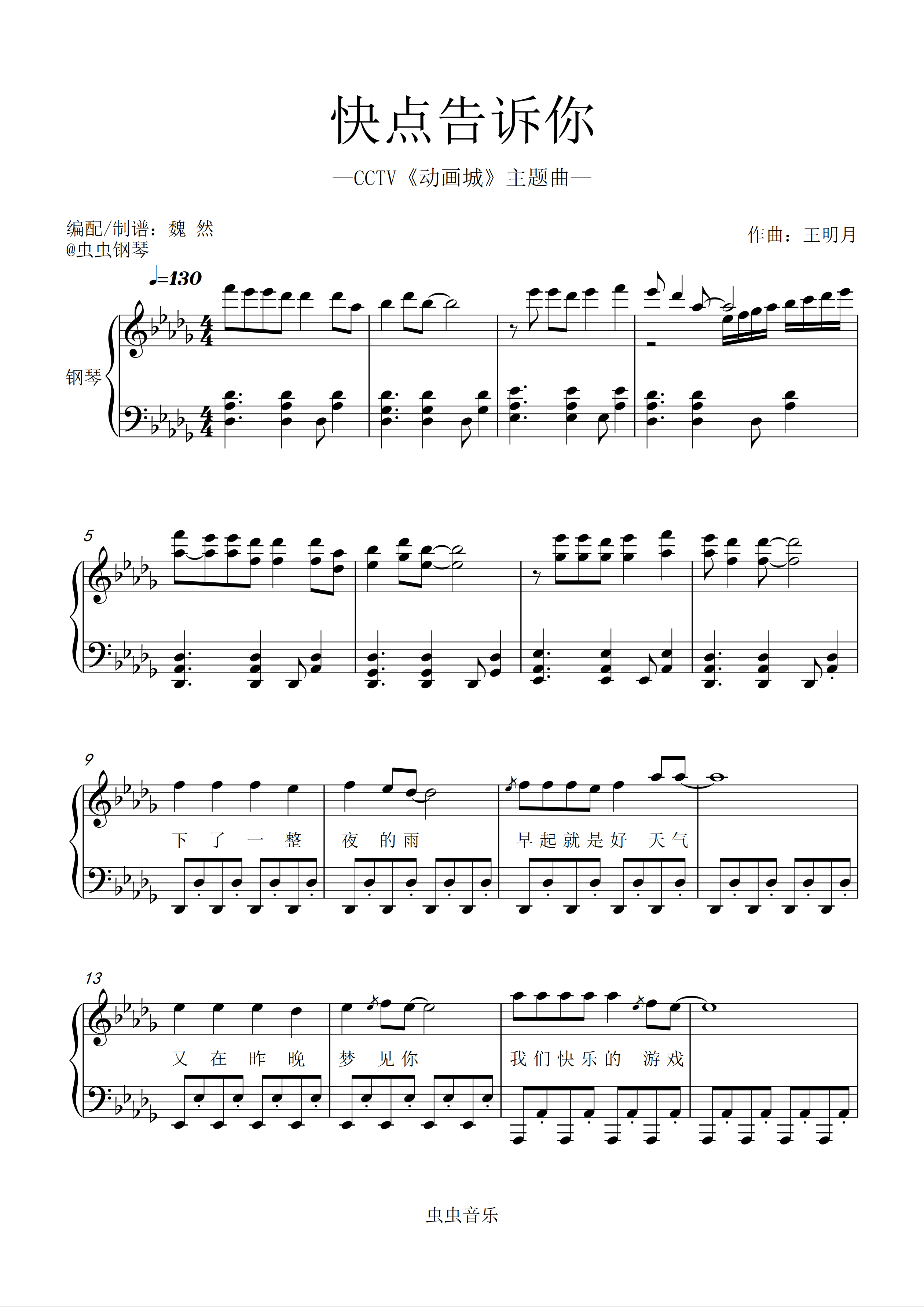 钢琴谱:【动画城】快点告诉你(精编版)——『忧伤歌声』