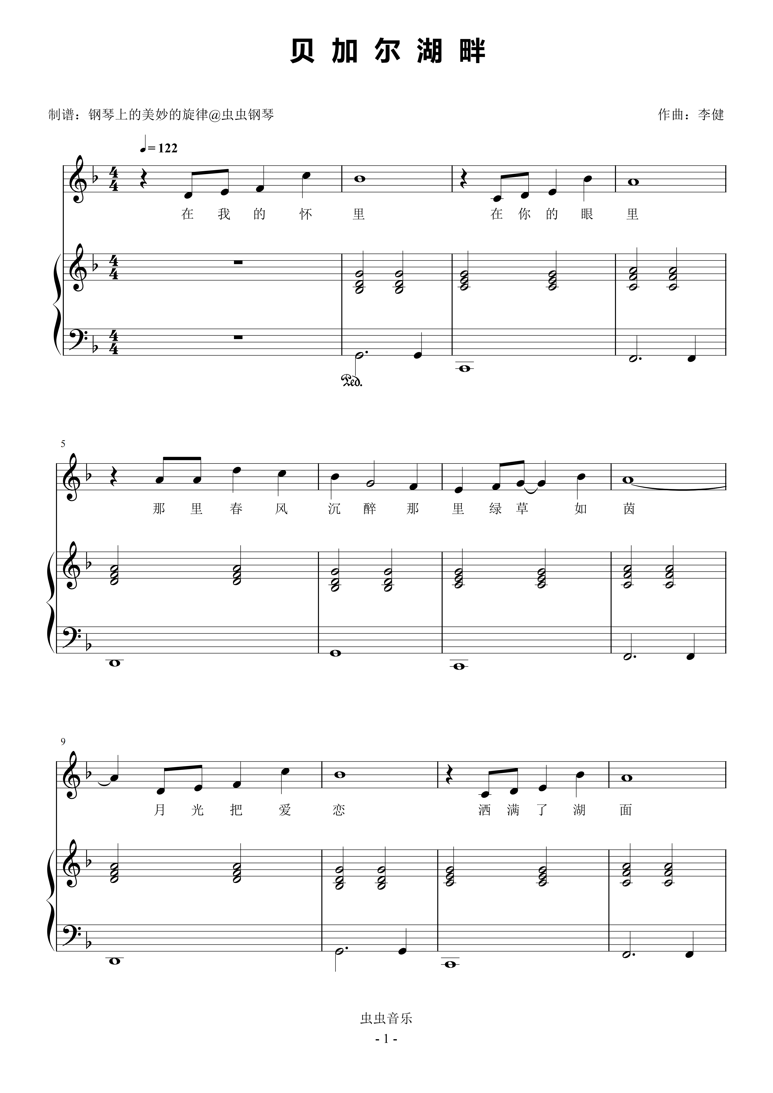 • 贝加尔湖畔钢琴简谱 F调 数字双手 李健