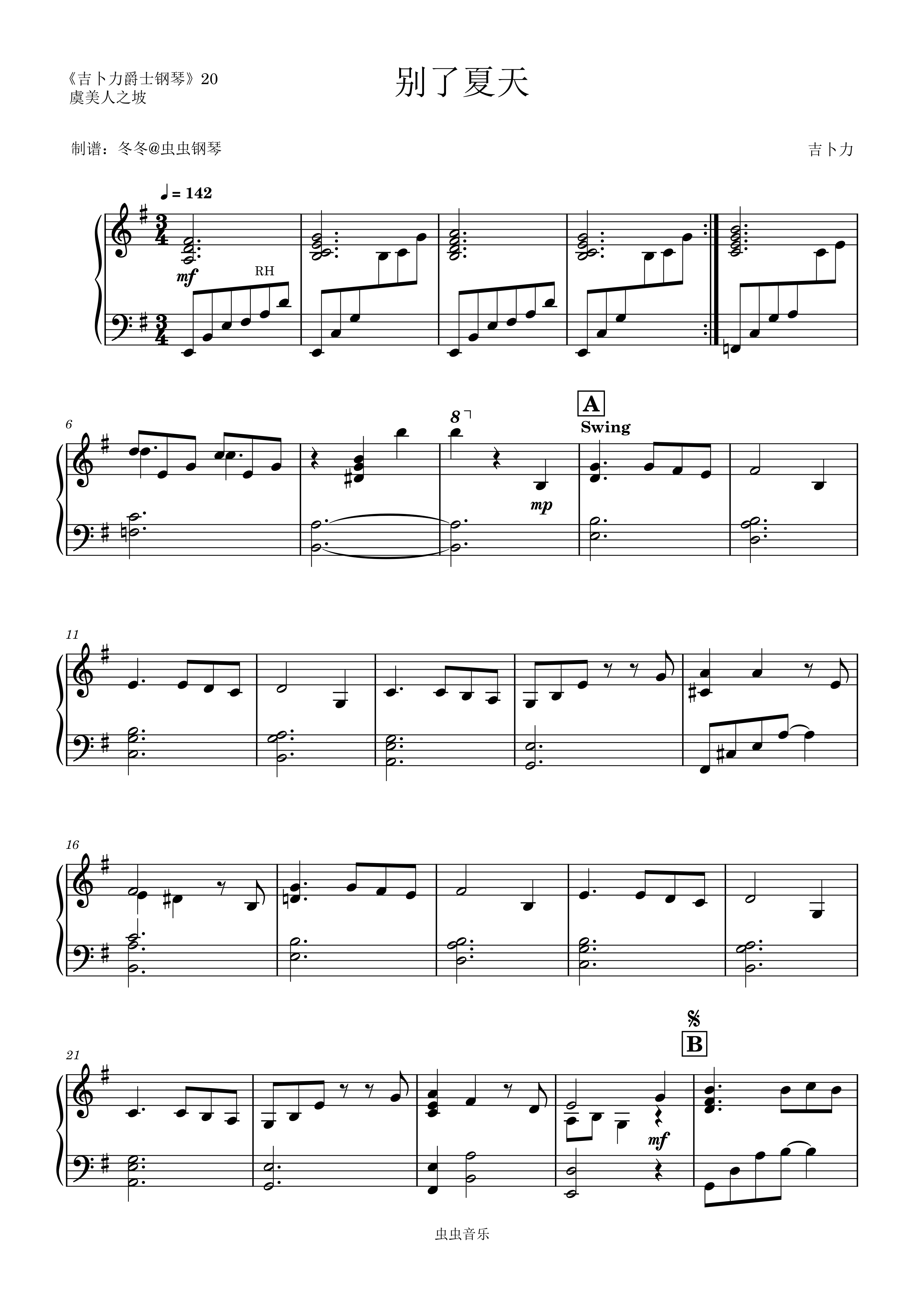 钢琴谱:别了夏天【爵士】虞美人之坡
