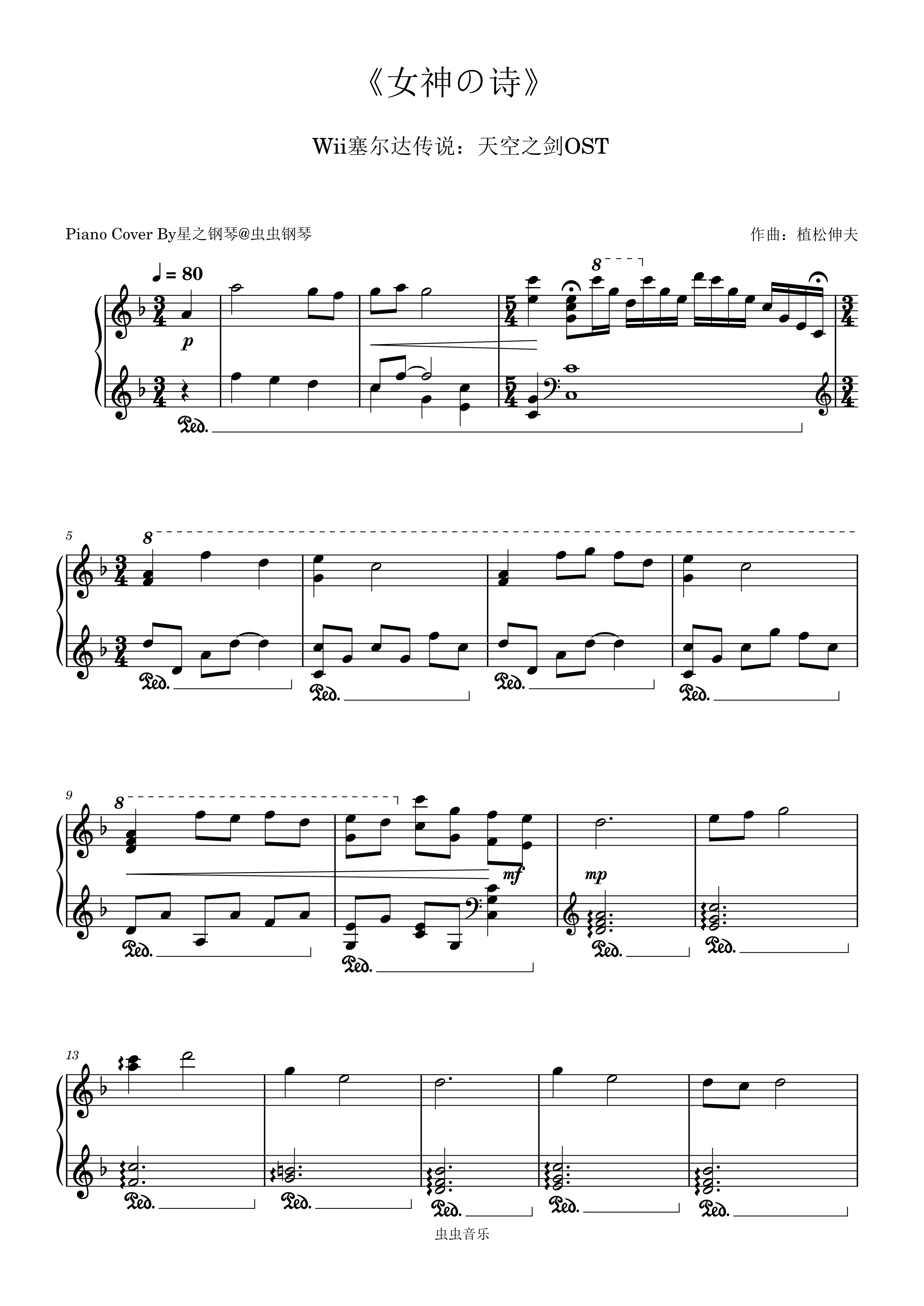 钢琴谱:【塞尔达传说】天空之剑《女神の诗》钢琴独奏版~星之钢琴~