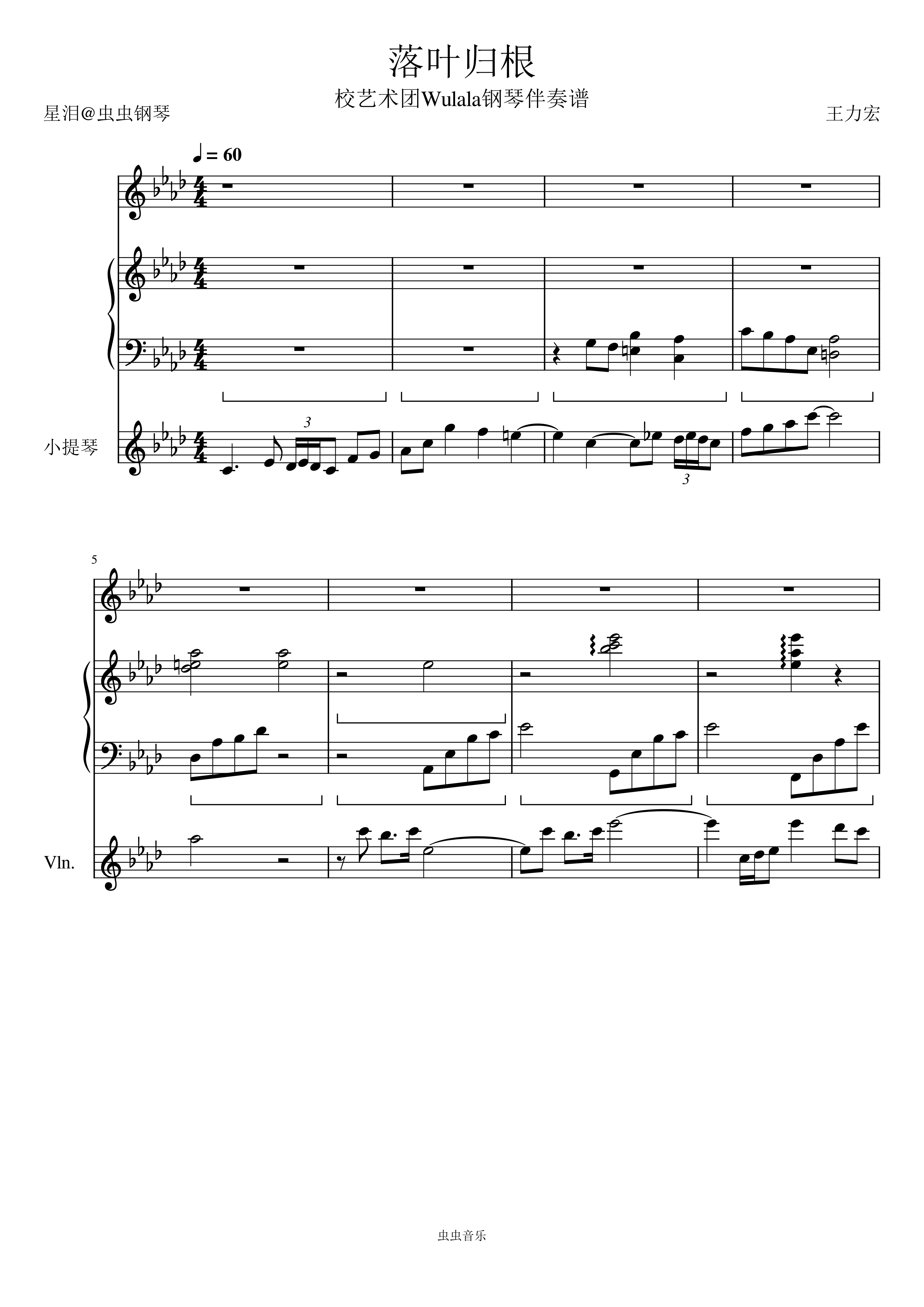 • 落叶归根钢琴简谱 Ab调 数字双手 王力宏