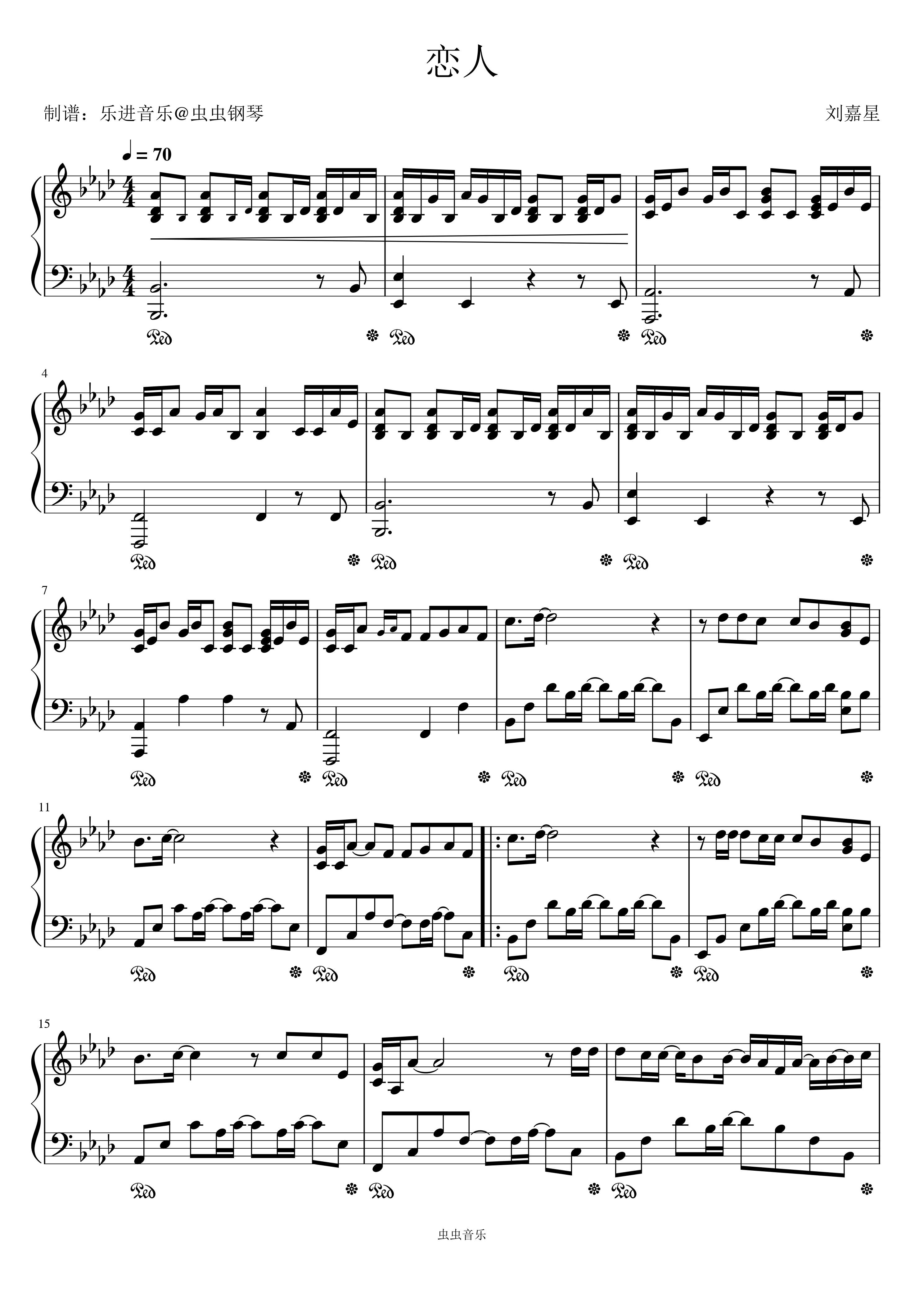 钢琴谱:《恋人》原调精编