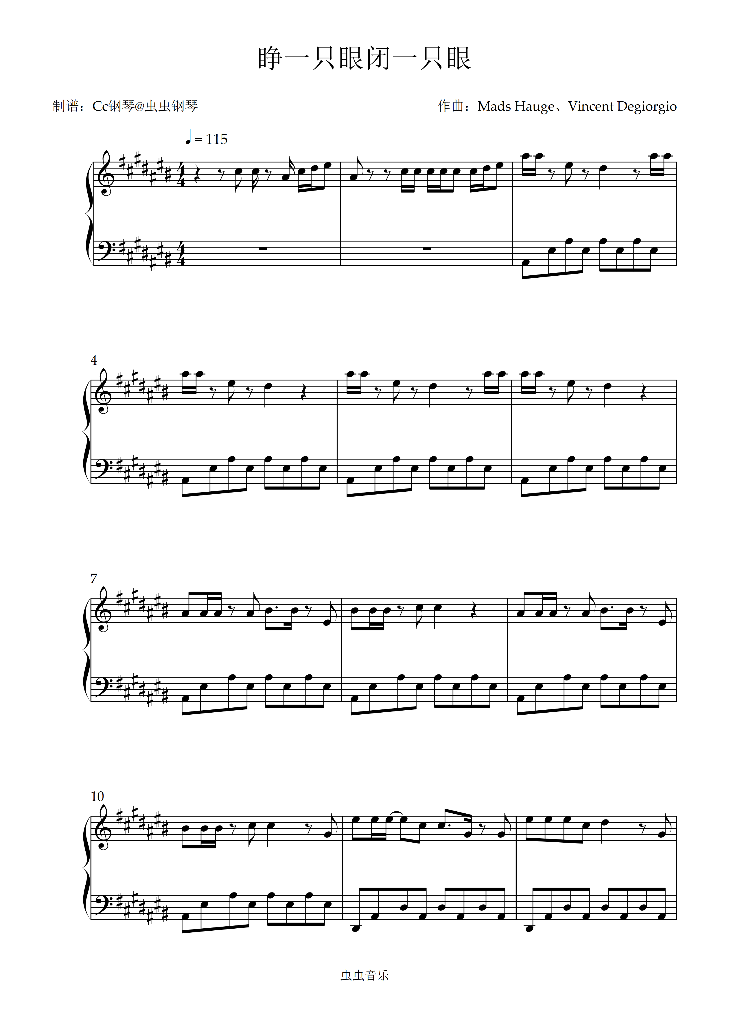 钢琴谱:睁一只眼闭一只眼 原调 好听易上手