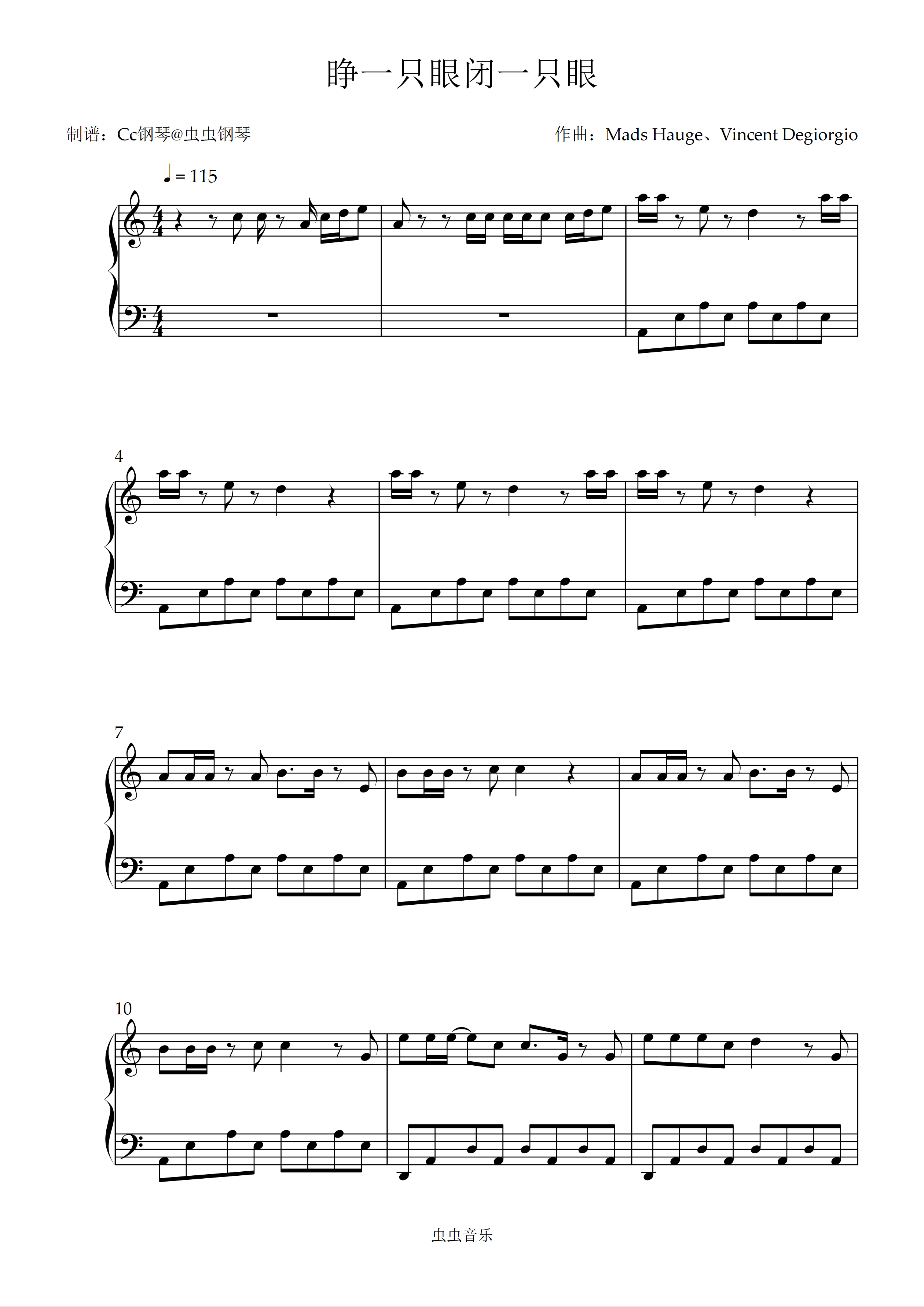 睁一只眼闭一只眼钢琴简谱 数字双手