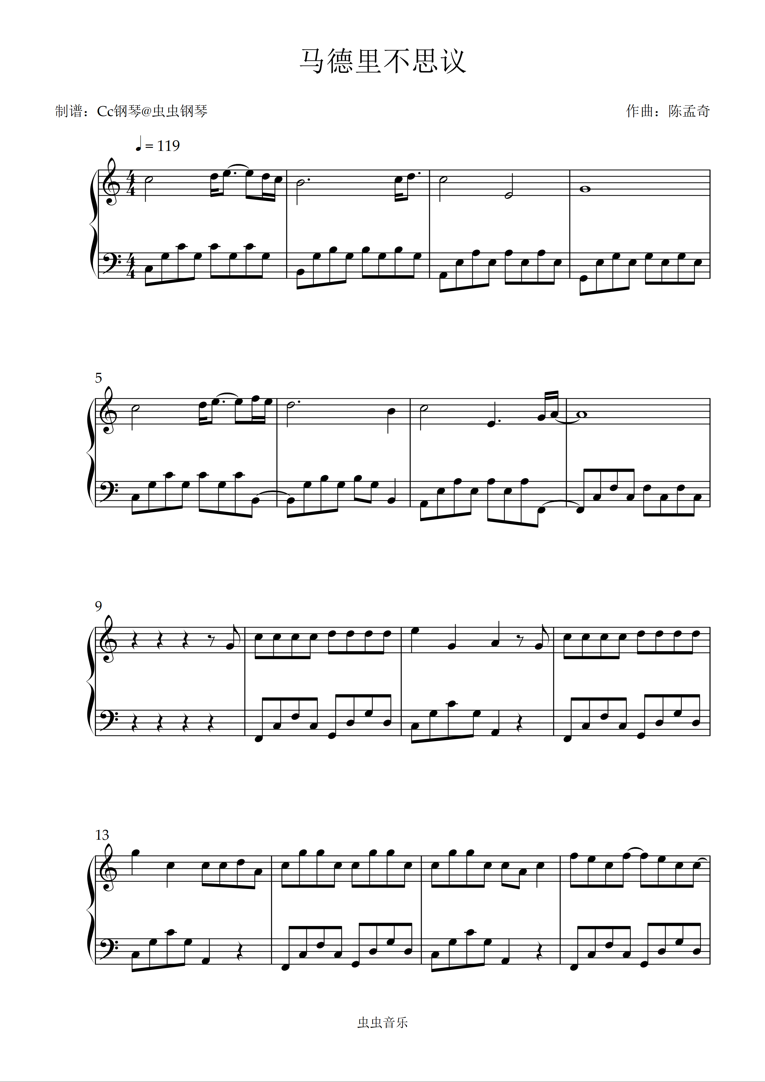 钢琴谱:马德里不思议 C调 好听易上手