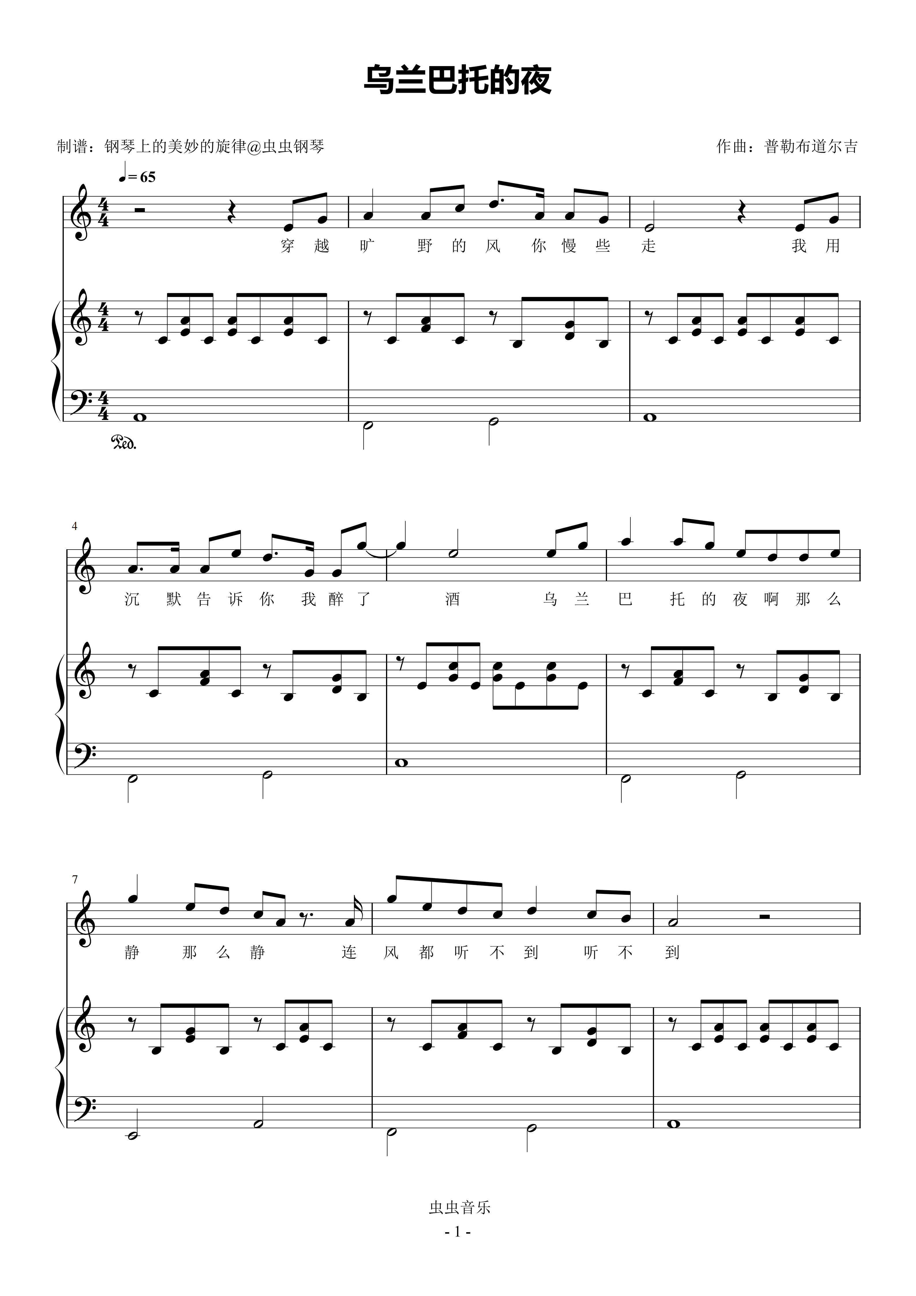 钢琴谱:乌兰巴托的夜 C调简易钢琴弹唱伴奏 带歌词