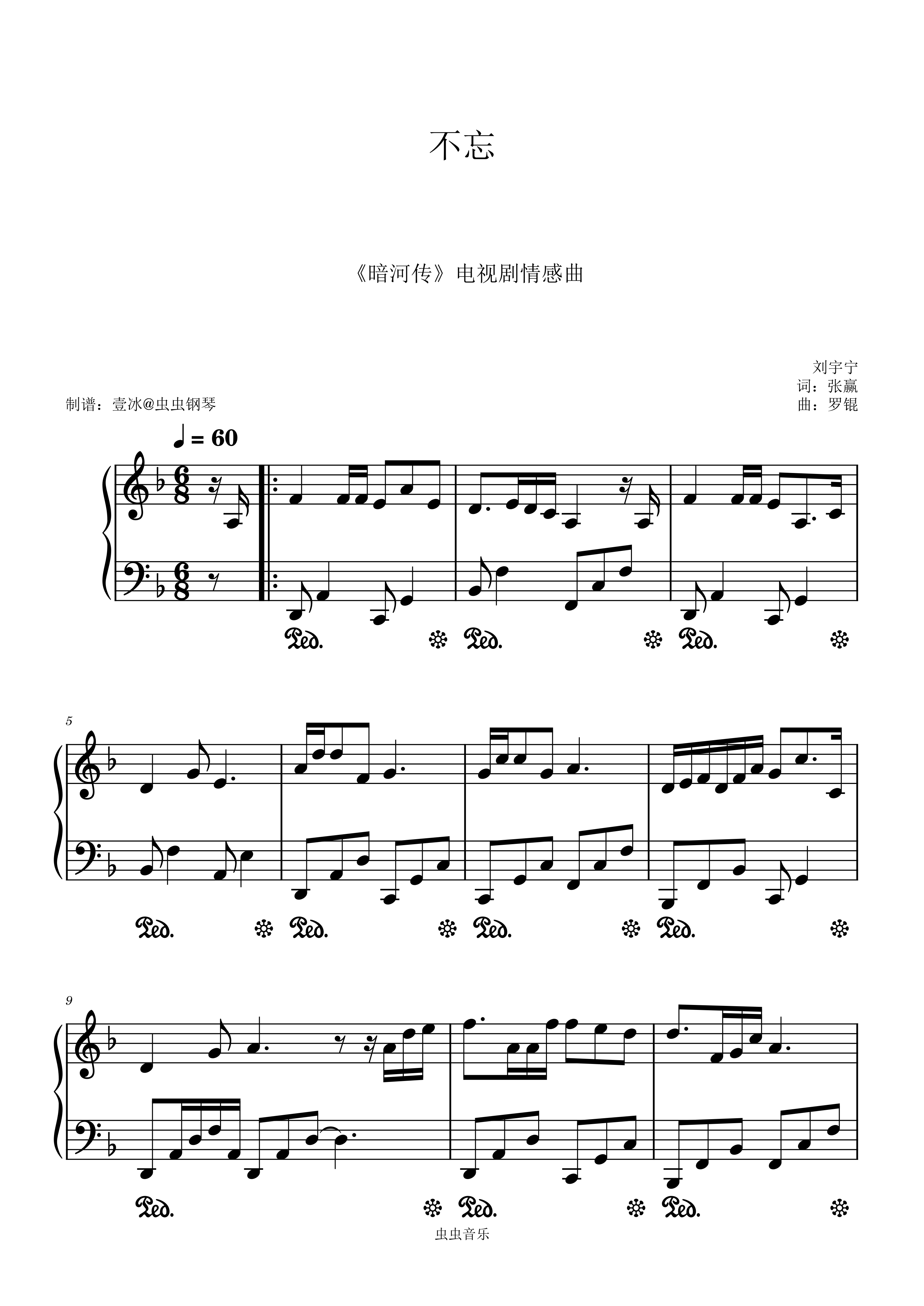 钢琴谱:不忘 (《暗河传》电视剧情感曲) - 刘宇宁 原调