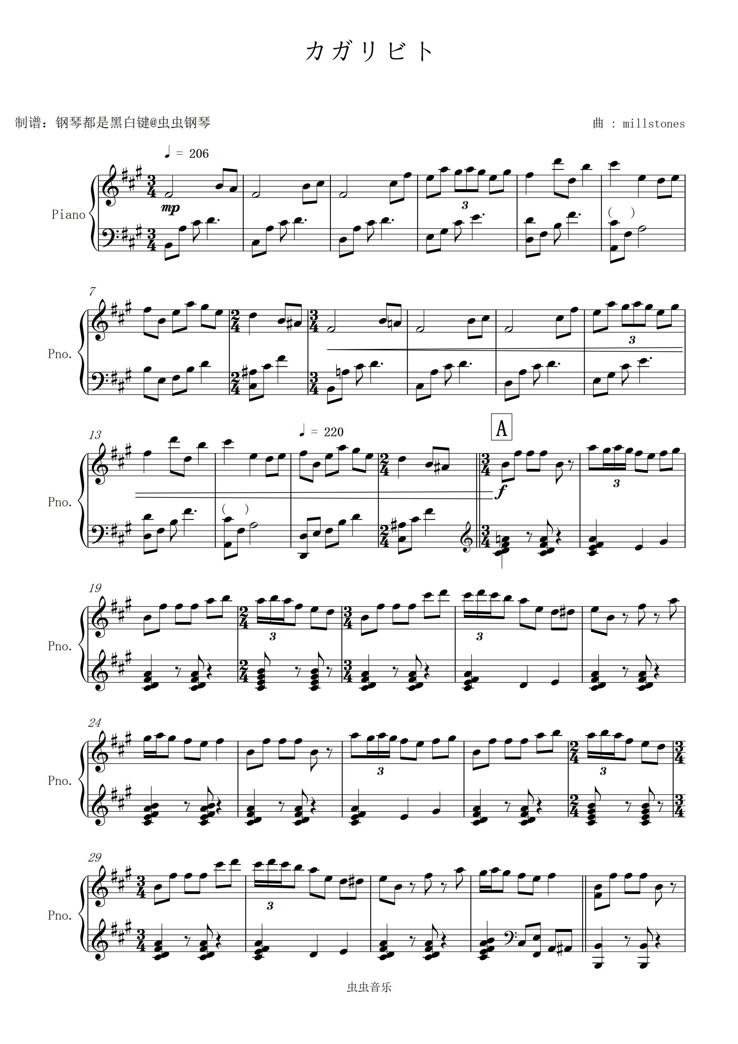 钢琴谱:[初音ミク]カガリビト