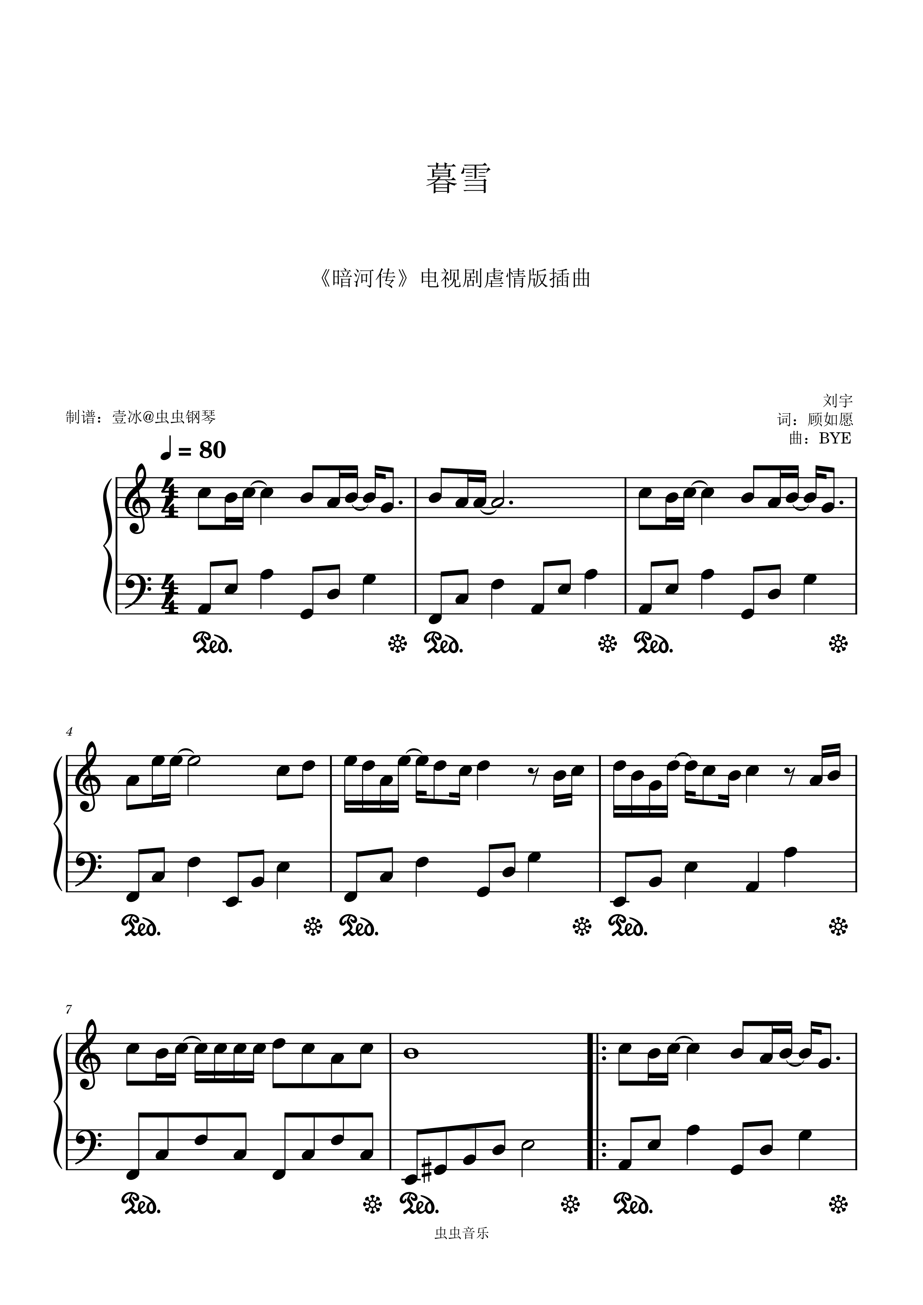 钢琴谱:暮雪 (《暗河传》电视剧虐情版插曲) - C调