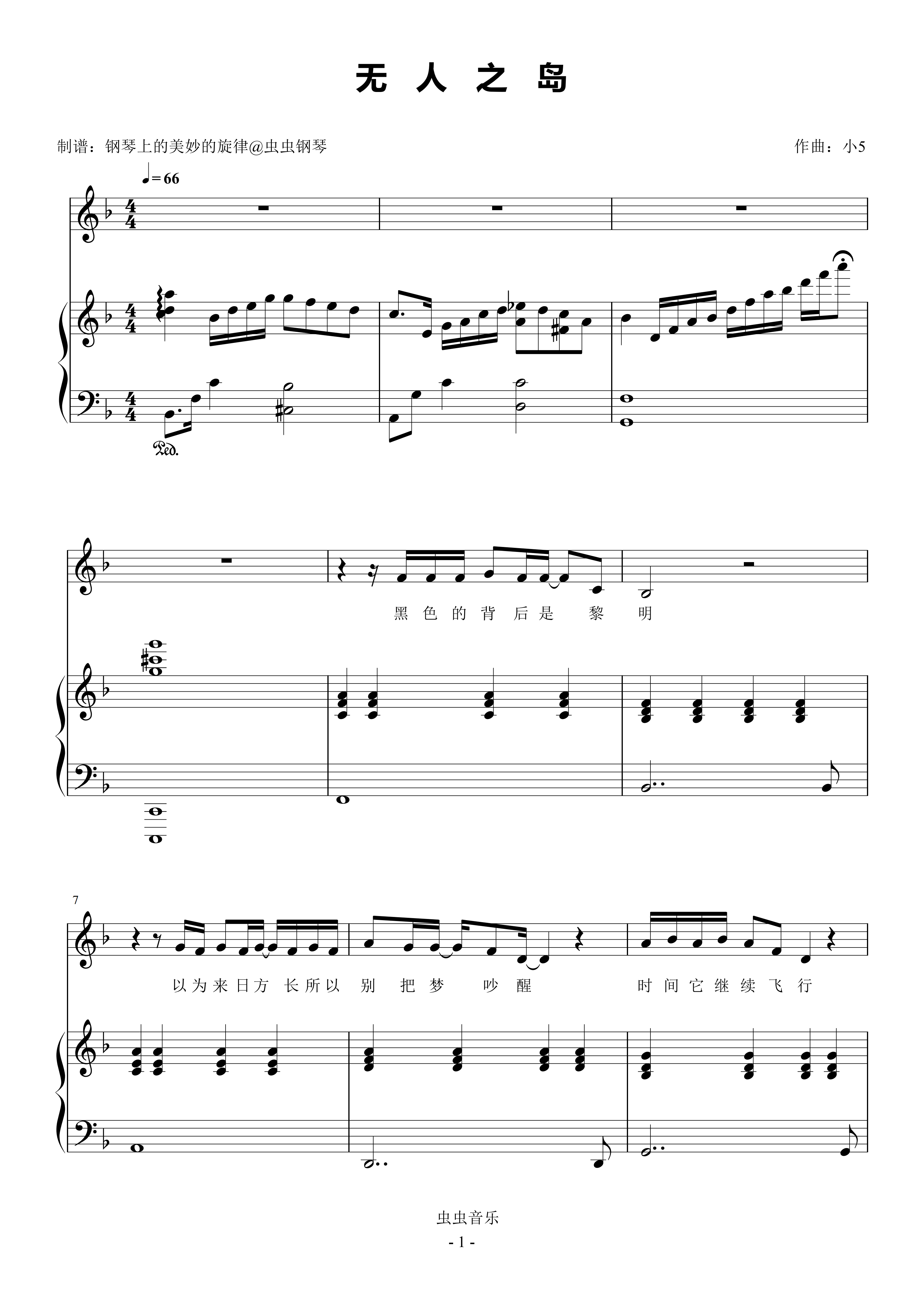 • 无人之岛钢琴简谱 F调 数字双手 申名利