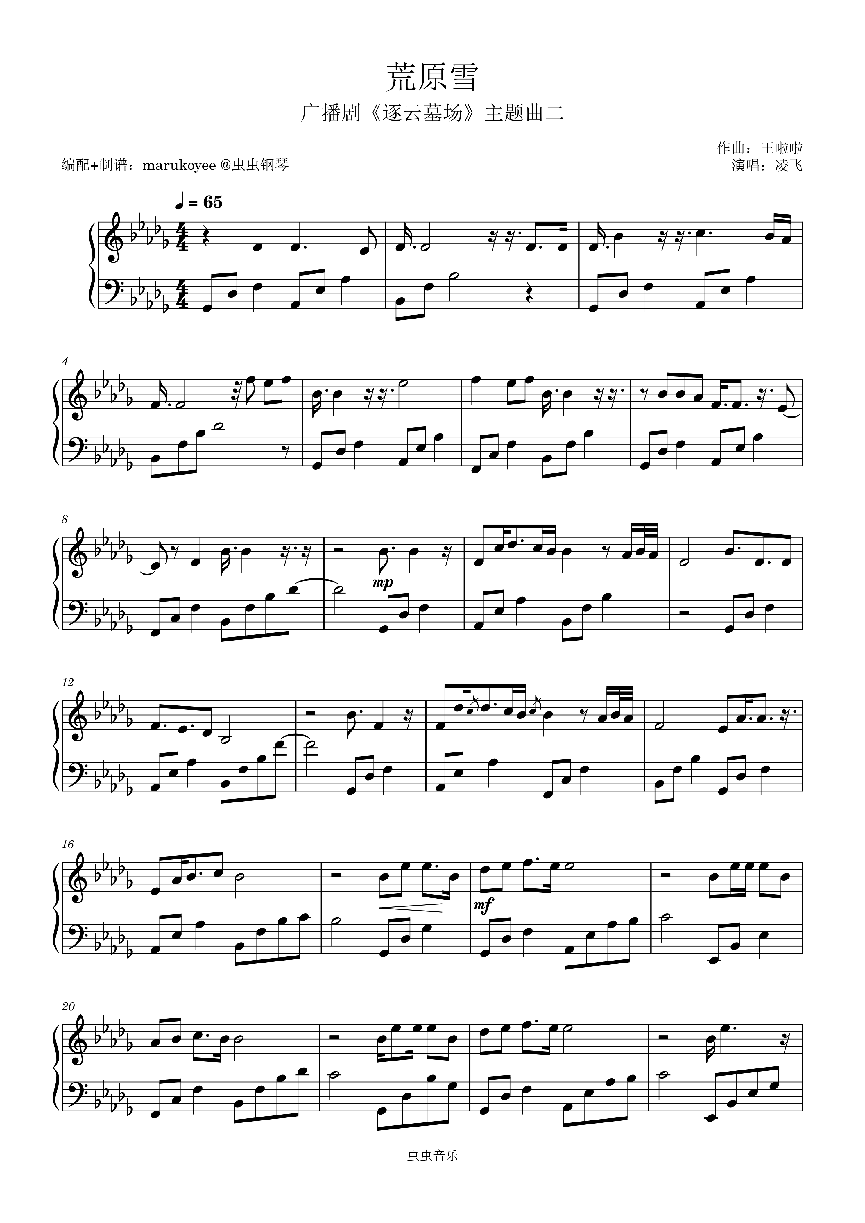 钢琴谱:【逐云墓场广播剧】主题曲二《荒原雪》(原调Db)