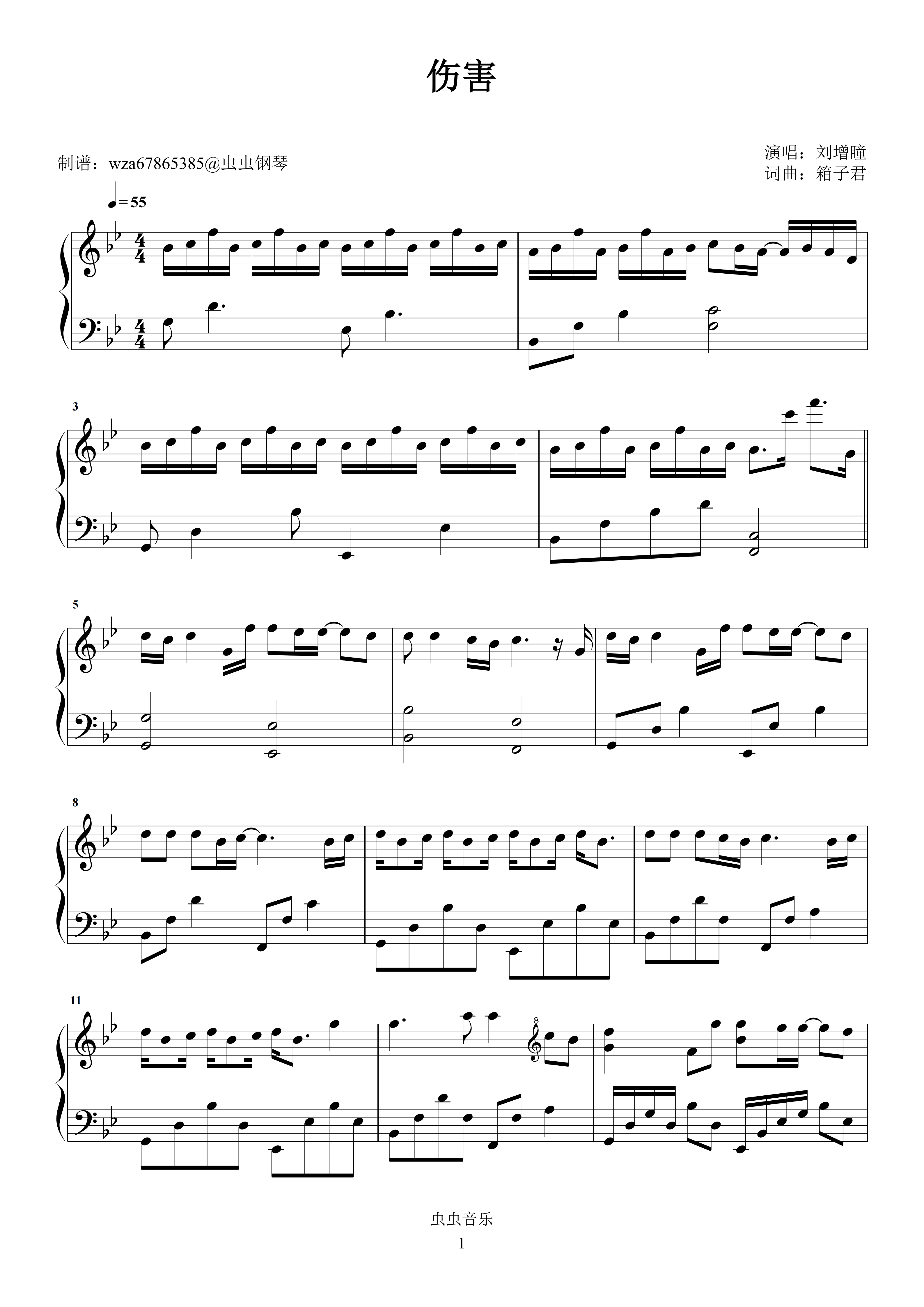 钢琴谱:伤害