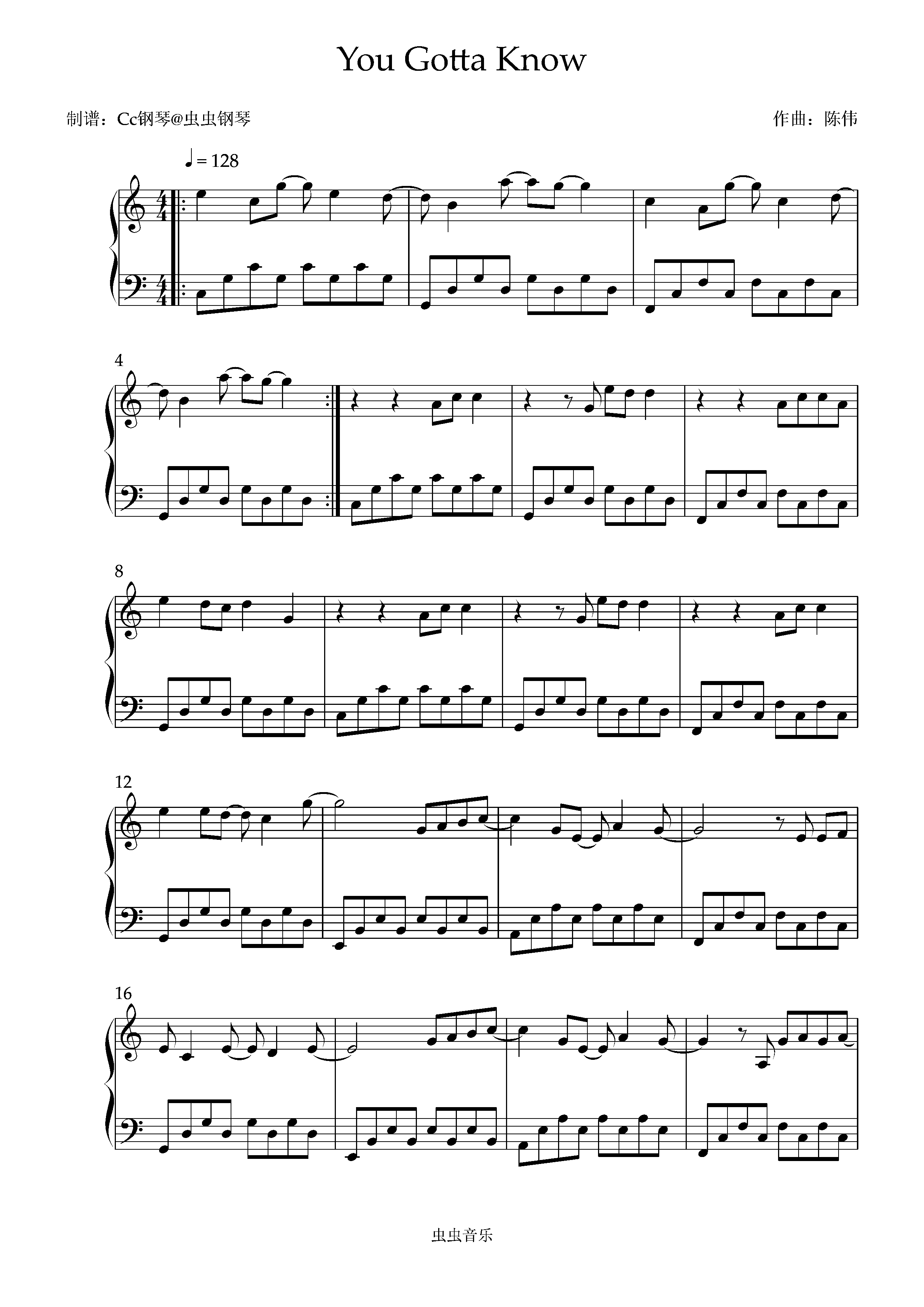 • Got You钢琴简谱 G调 数字双手 刘耀文