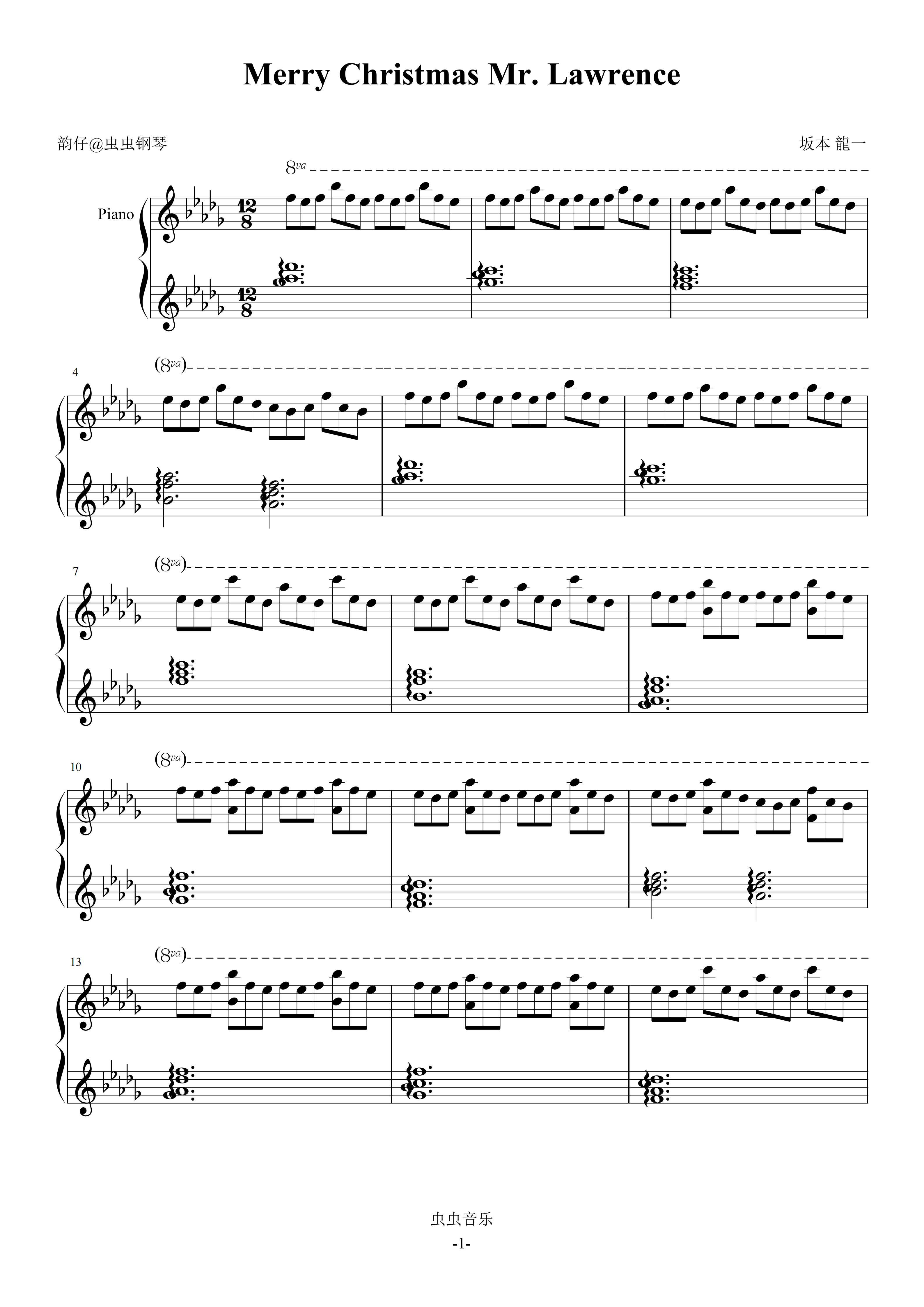 • Merry Christmas Mr Lawrence钢琴简谱 bb调 数字双手